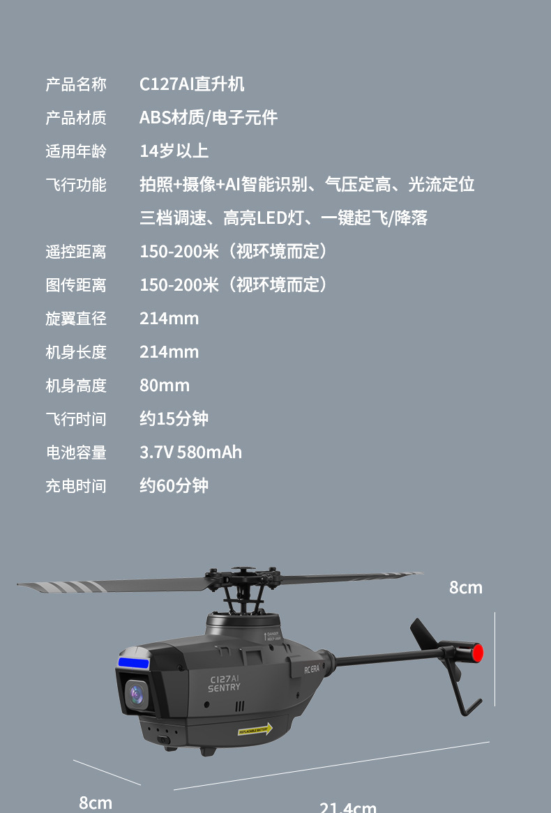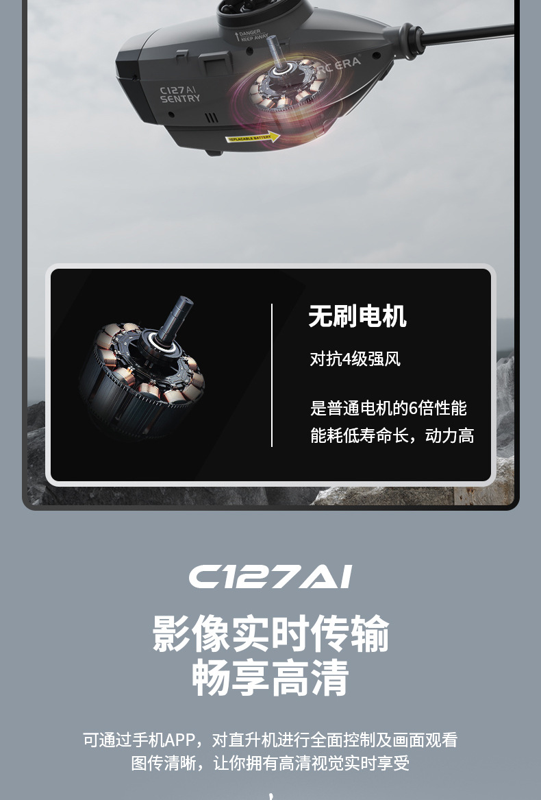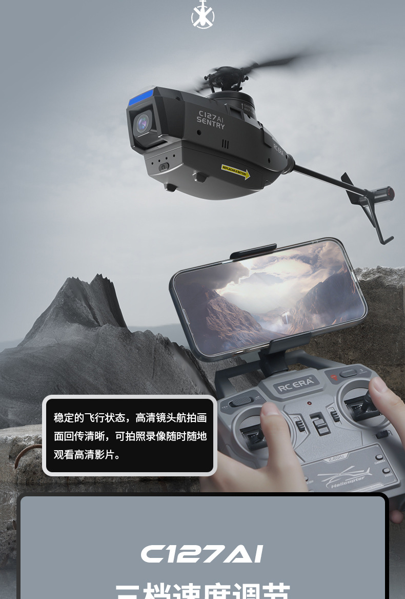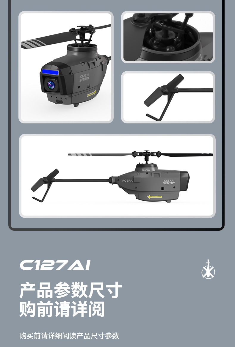 RC ERA C127AI 블랙 비 원격 제어 헬리콥터 브러시리스 단일 패들 보조 패들 없음 정찰 항공기 항공 사진 장난감스토어 가기