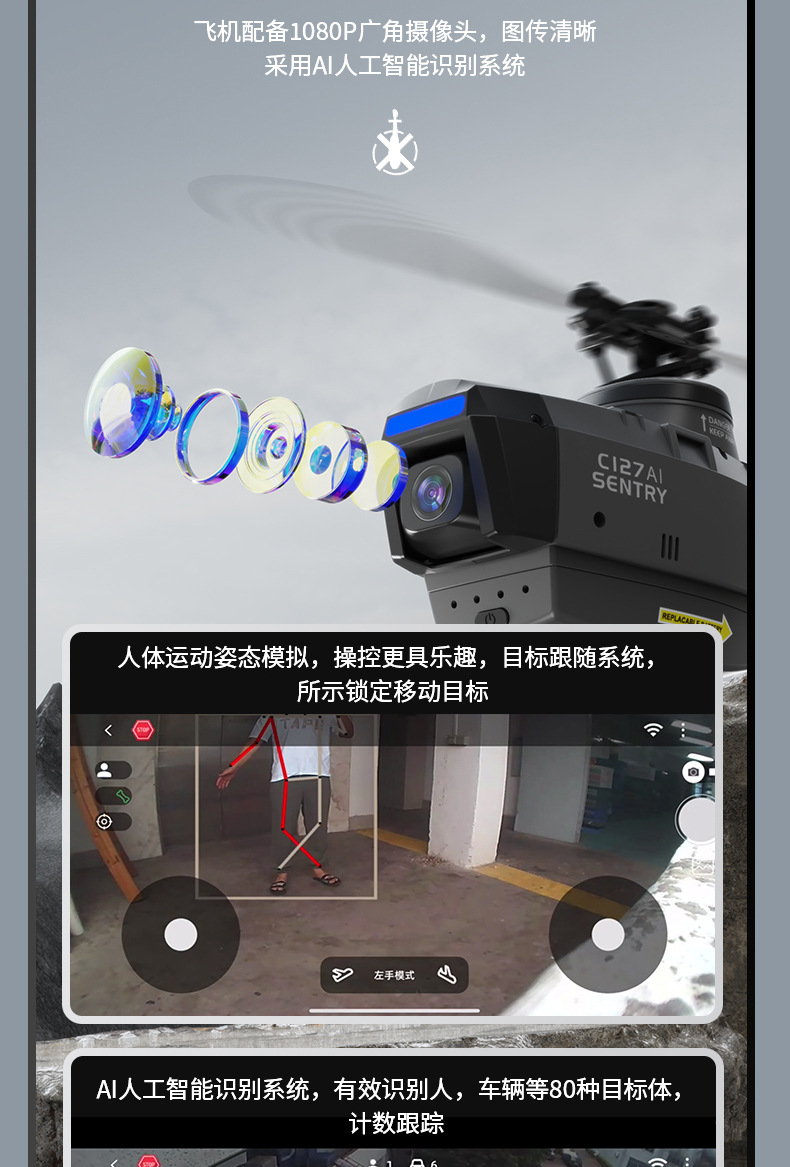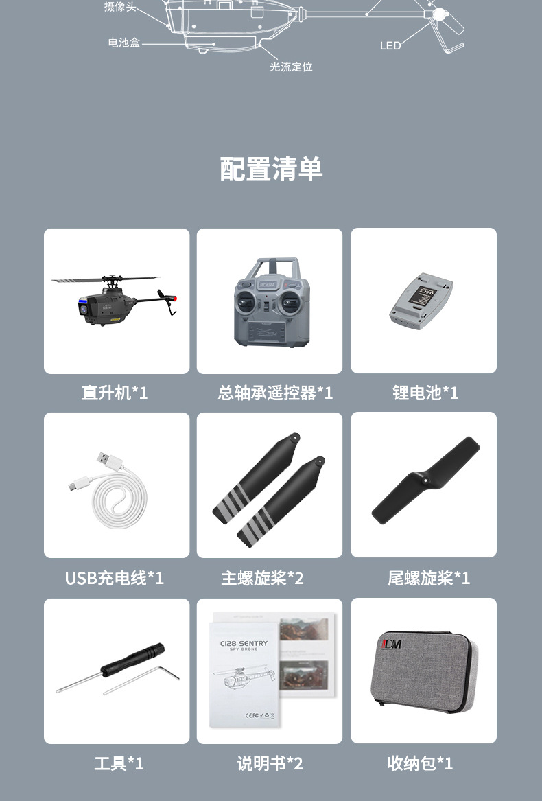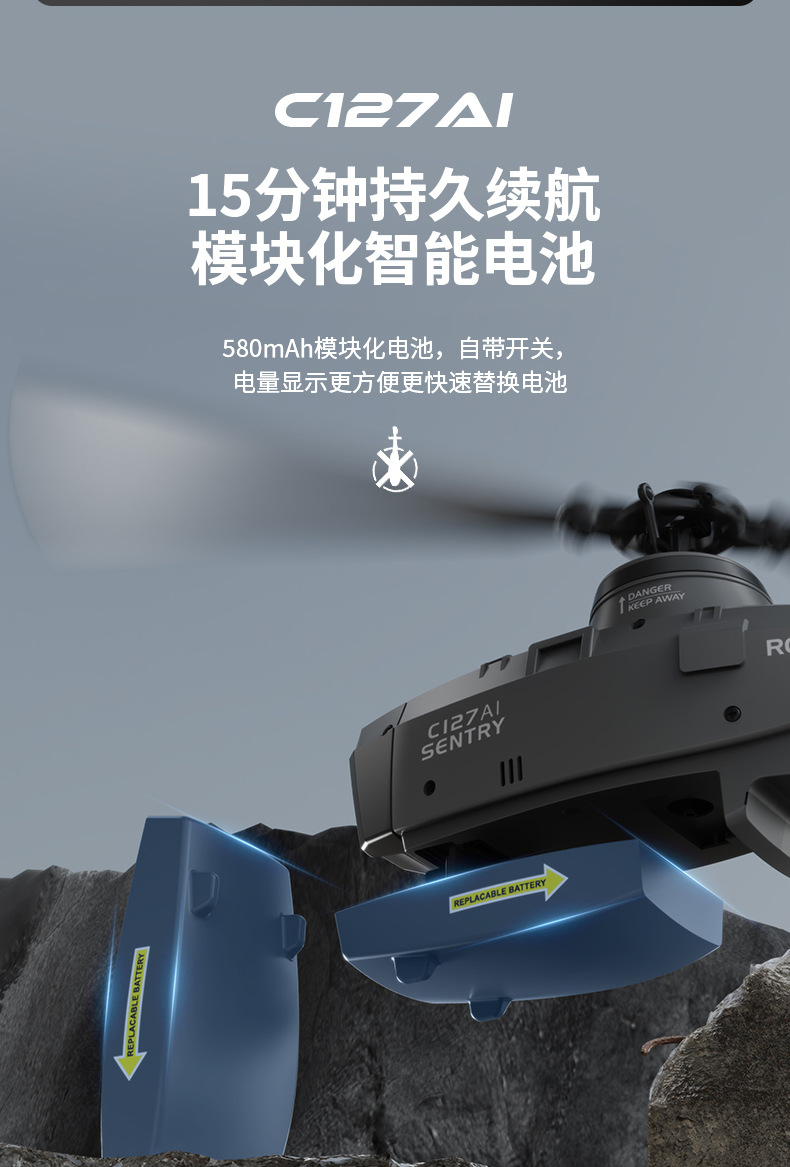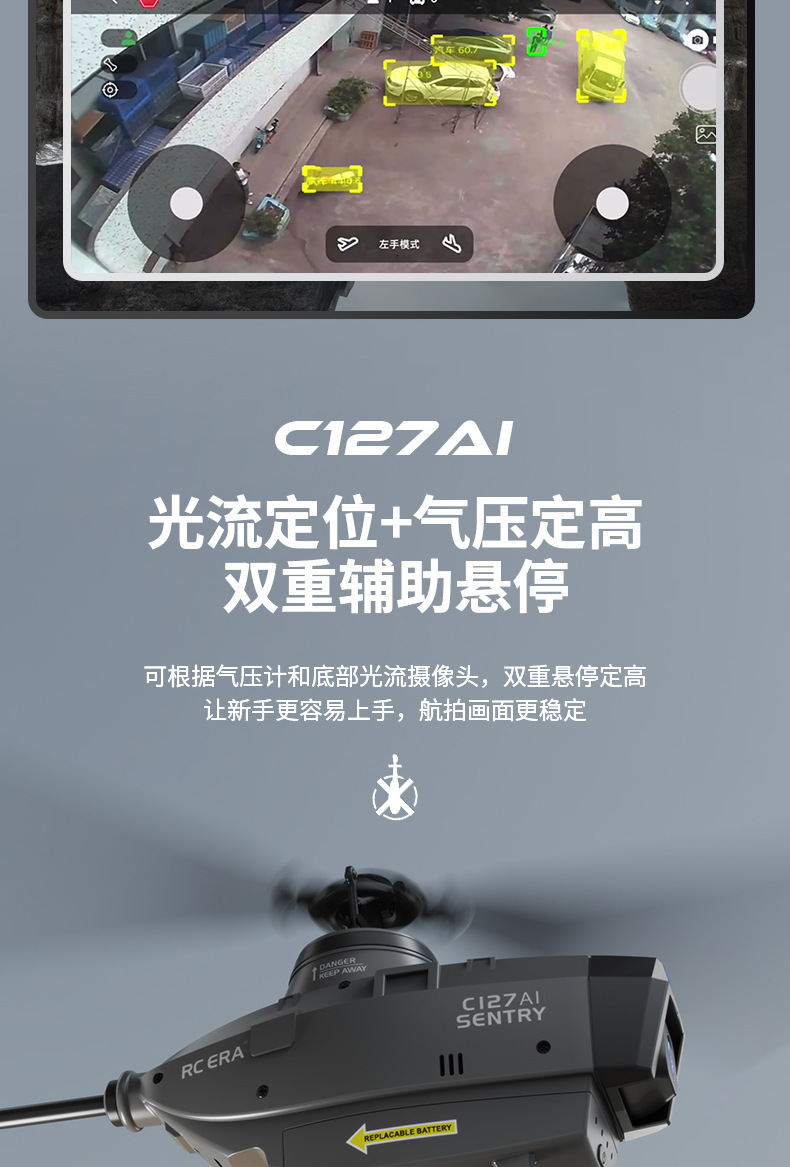 RC ERA C127AI 블랙 비 원격 제어 헬리콥터 브러시리스 단일 패들 보조 패들 없음 정찰 항공기 항공 사진 장난감스토어 가기