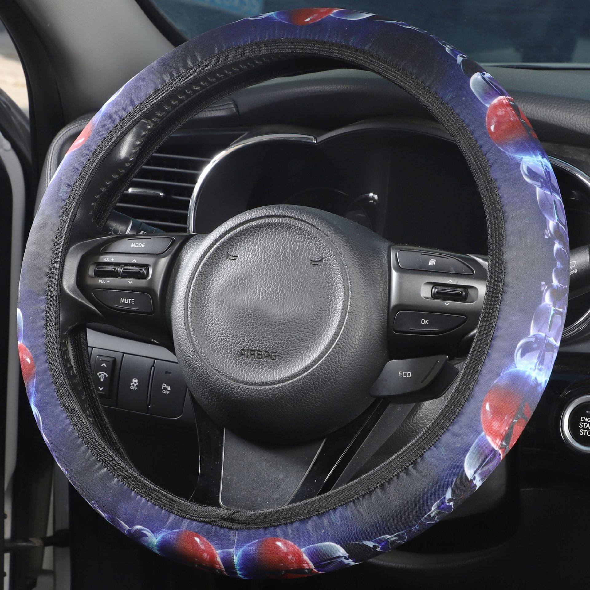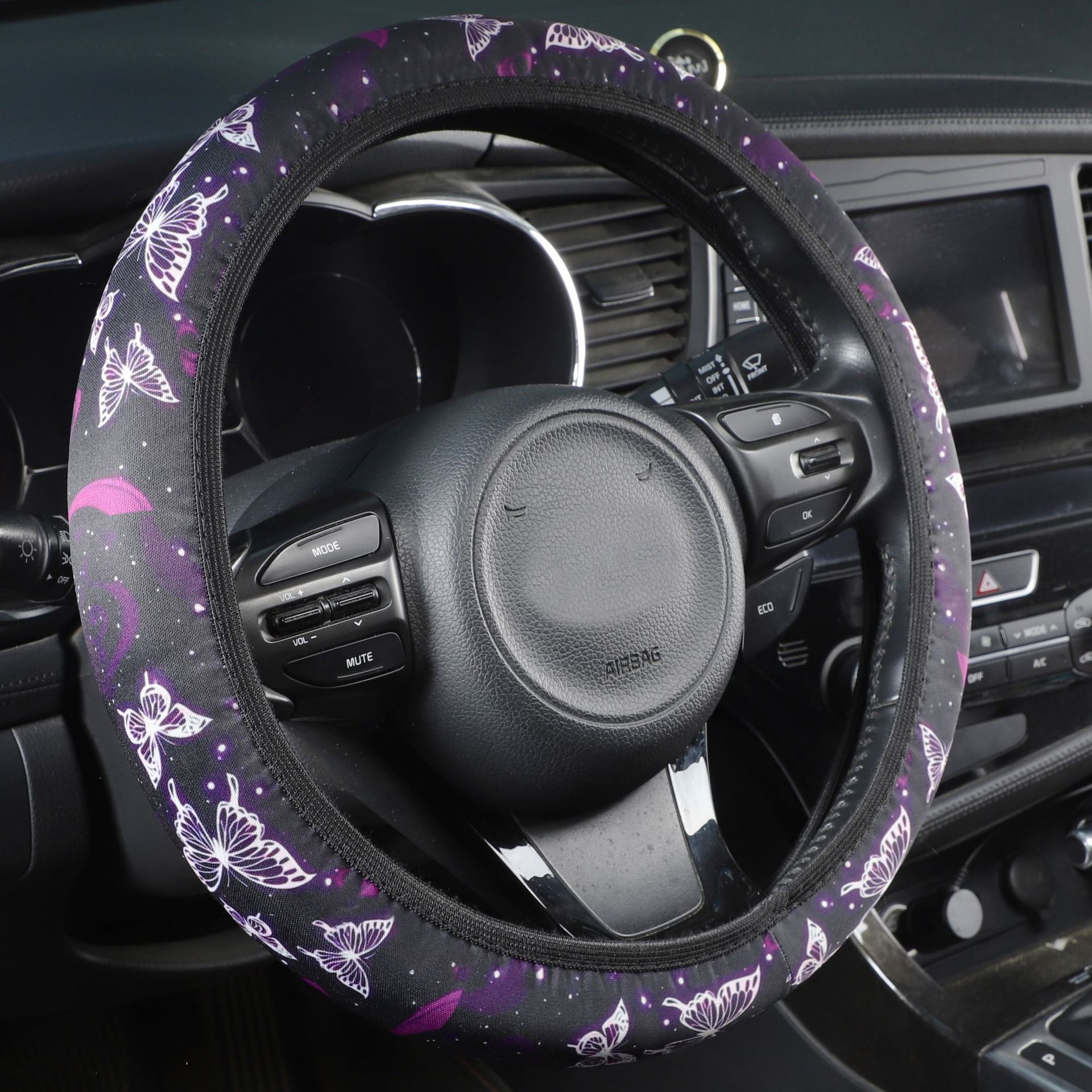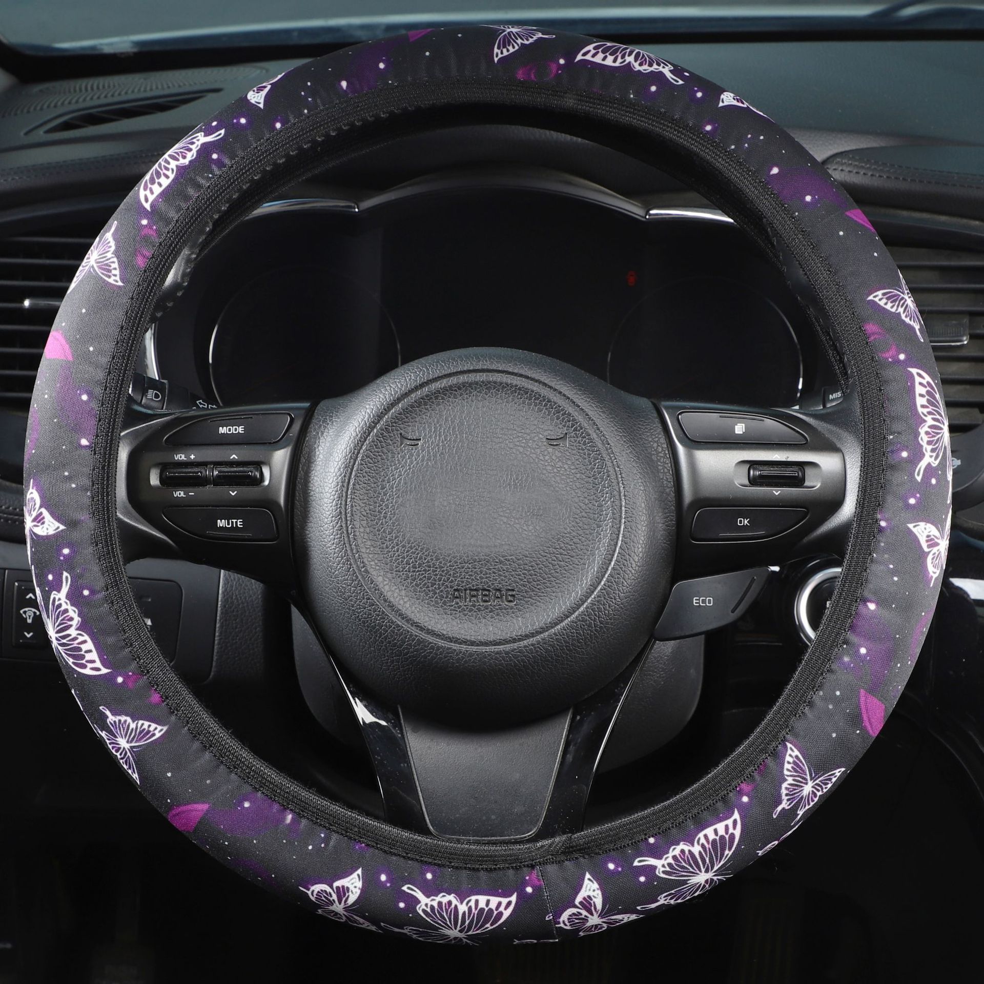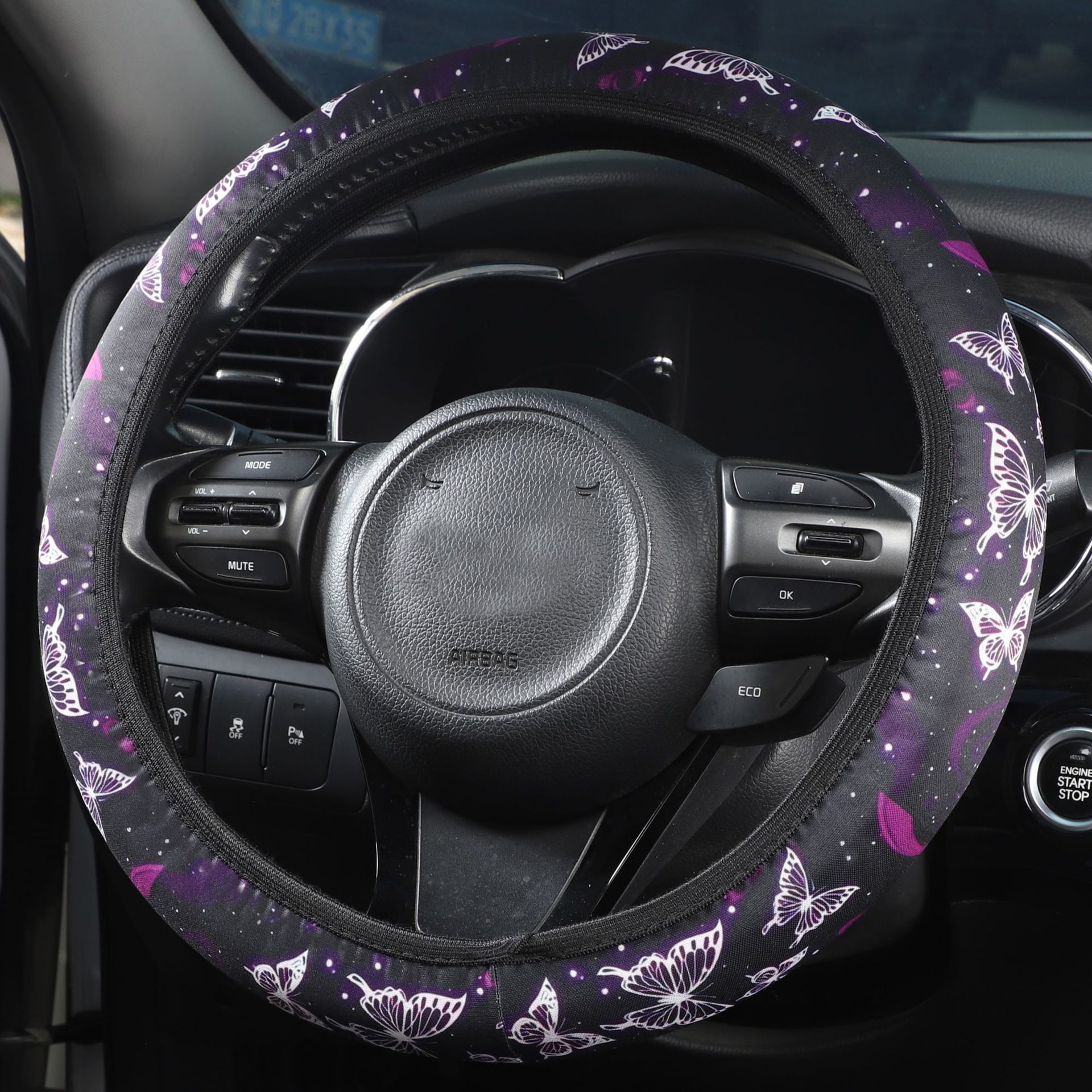 크로스 보더 자동차 핸들 커버 비 내부 탄성 세척 천 인쇄 핸들 커버 나비 파란색과 흰색 도자기 토템 핸들 커버스토어 가기