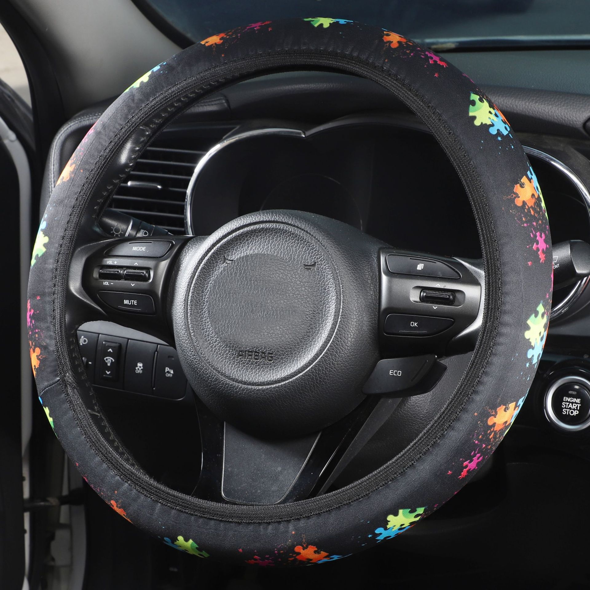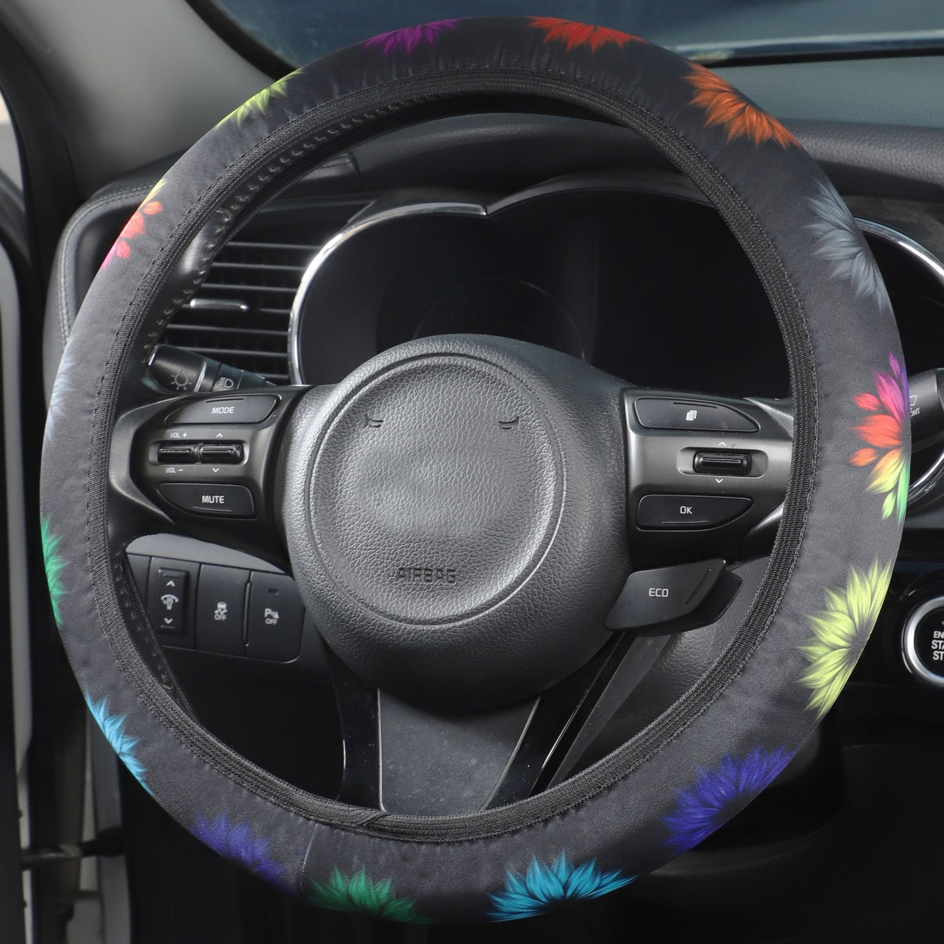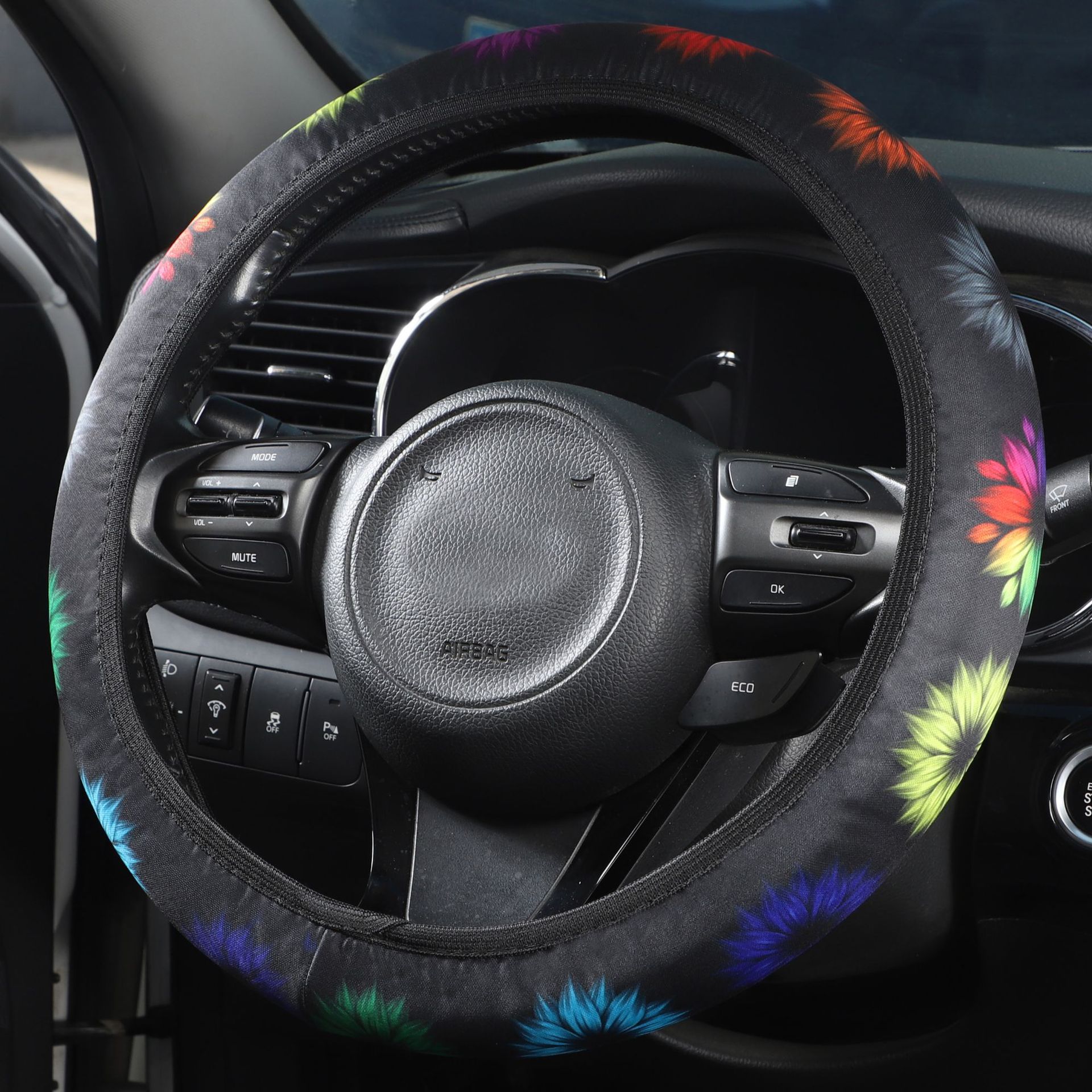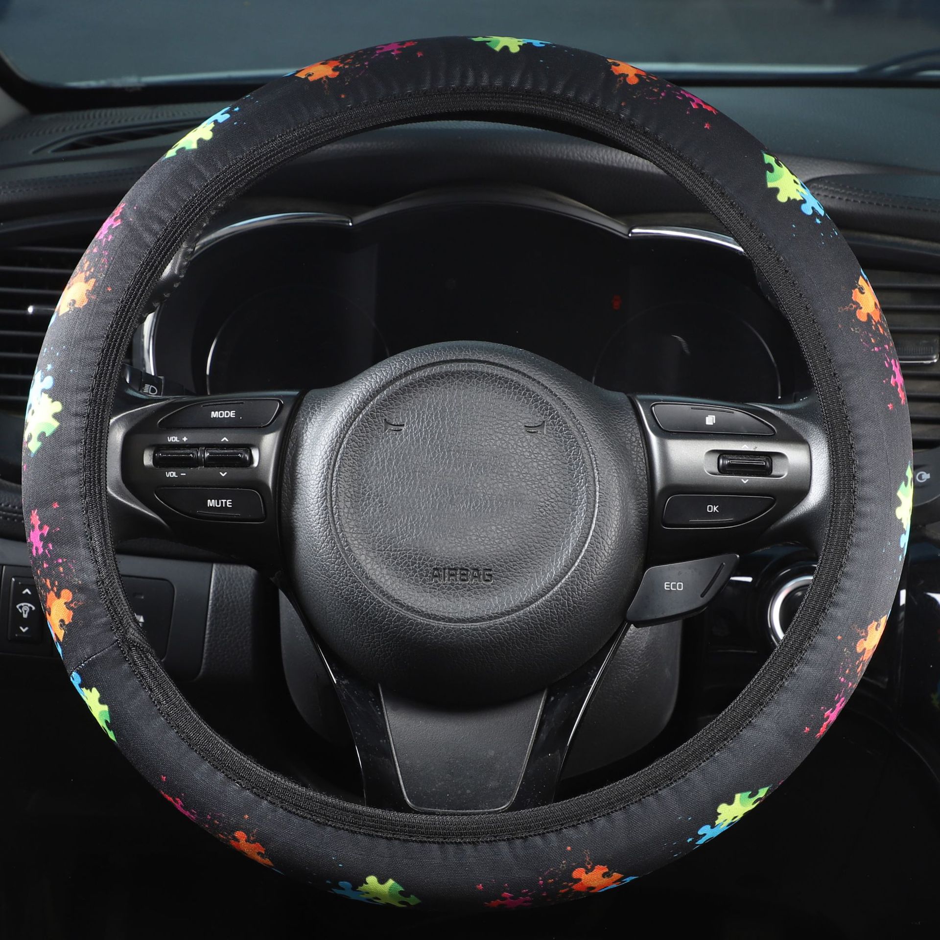 크로스 보더 자동차 핸들 커버 비 내부 탄성 세척 천 인쇄 핸들 커버 나비 파란색과 흰색 도자기 토템 핸들 커버스토어 가기