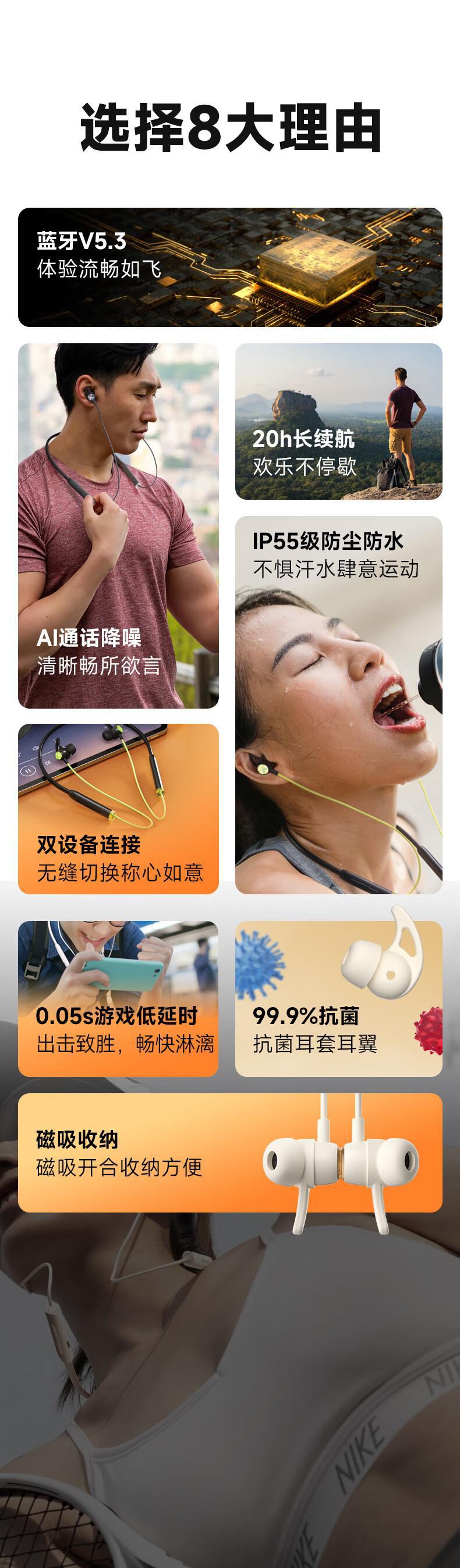 워커 (EDIFIER) shengmai X200BT 목 장착 무선 스포츠 블루투스 헤드셋 블루투스 5.3