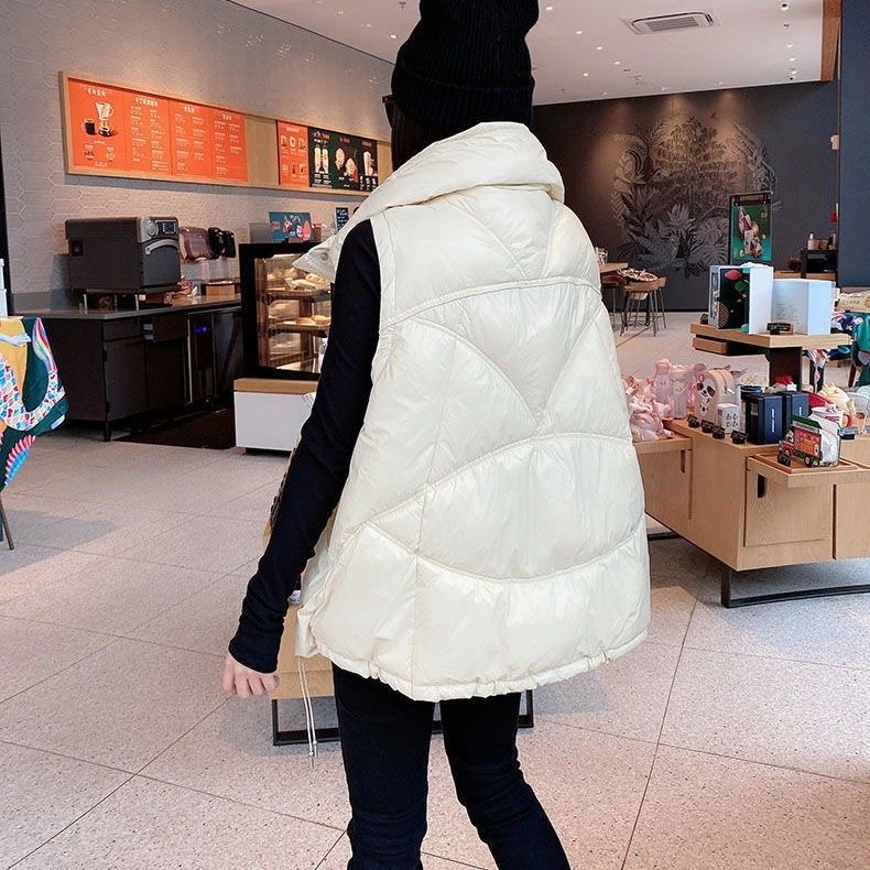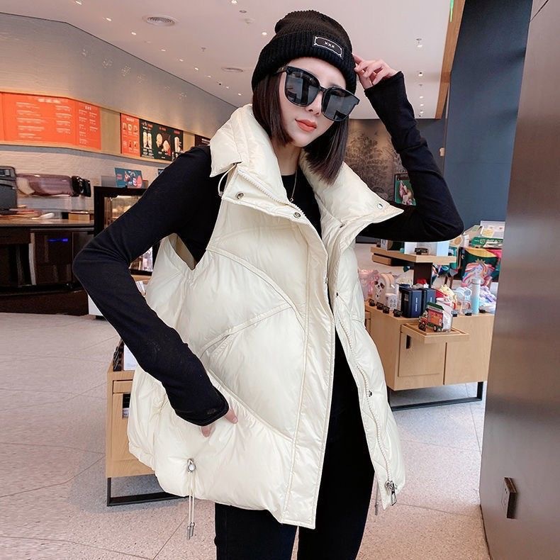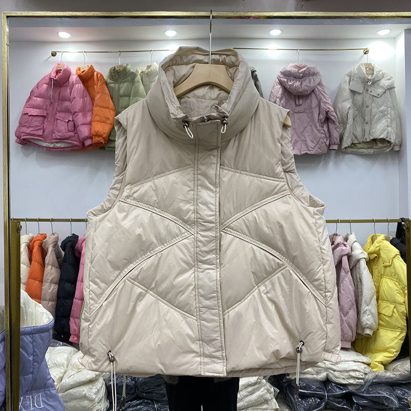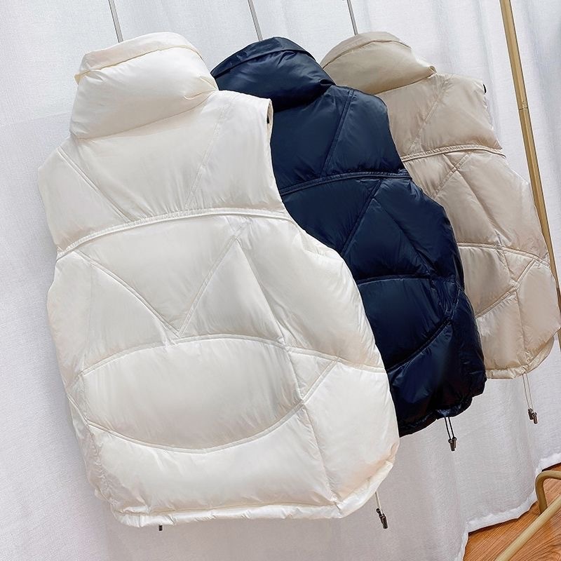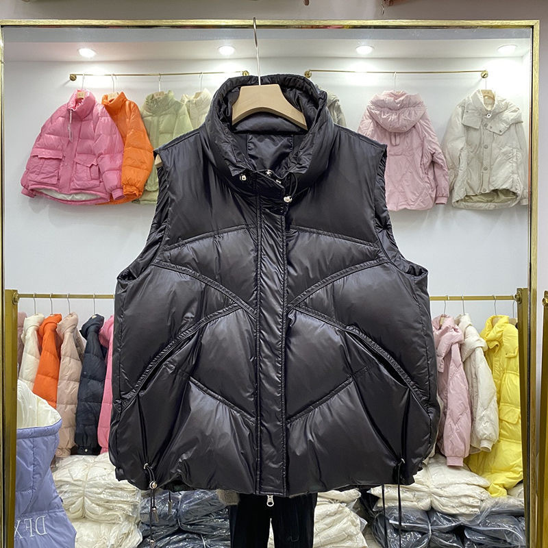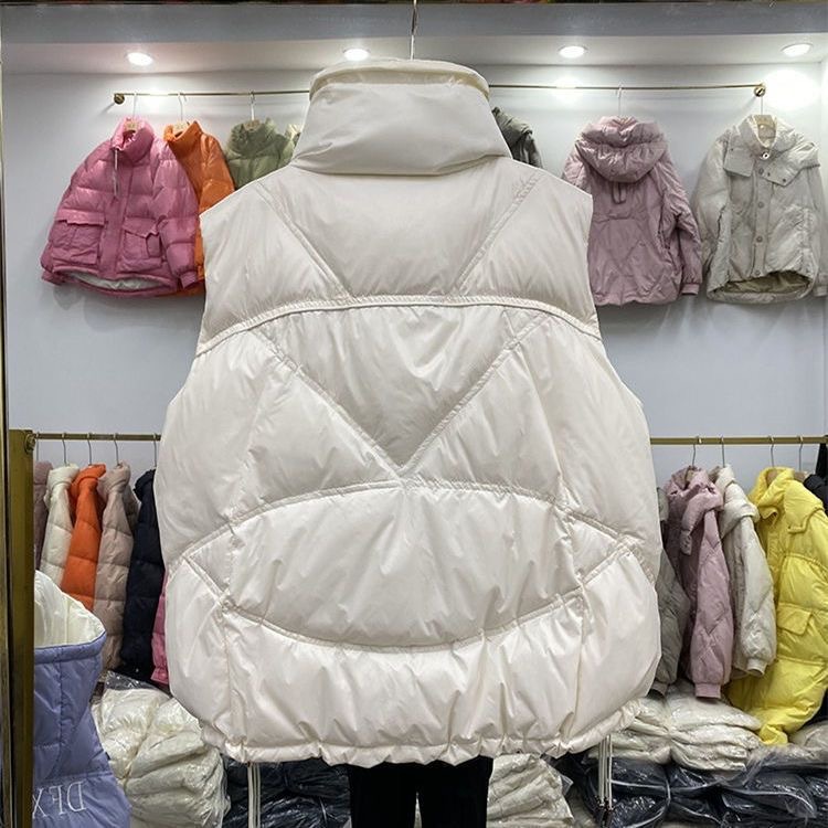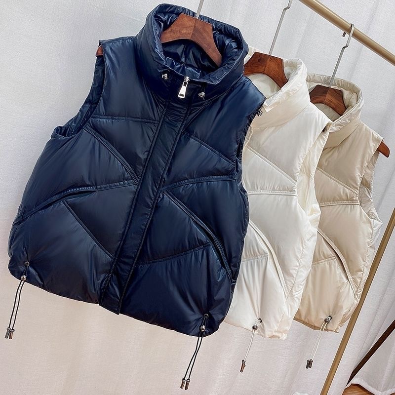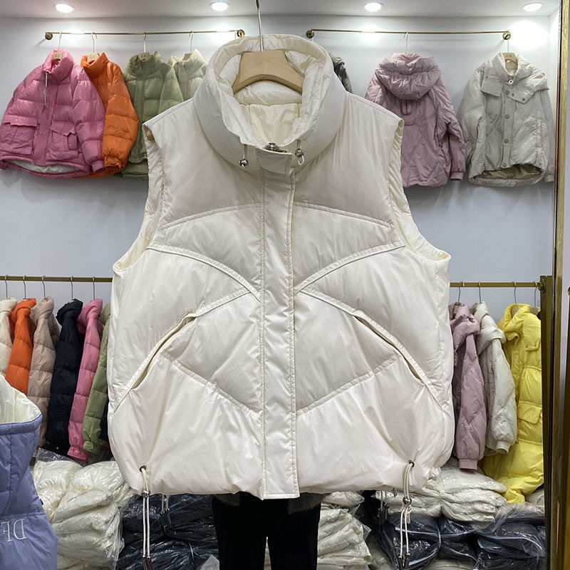 2023 시즌 새로운 화이트 오리 양털 여성용 조끼 보이지 않는 포켓 모든 매치 세련된 짧은 다운 재킷 조끼 겉옷 작은