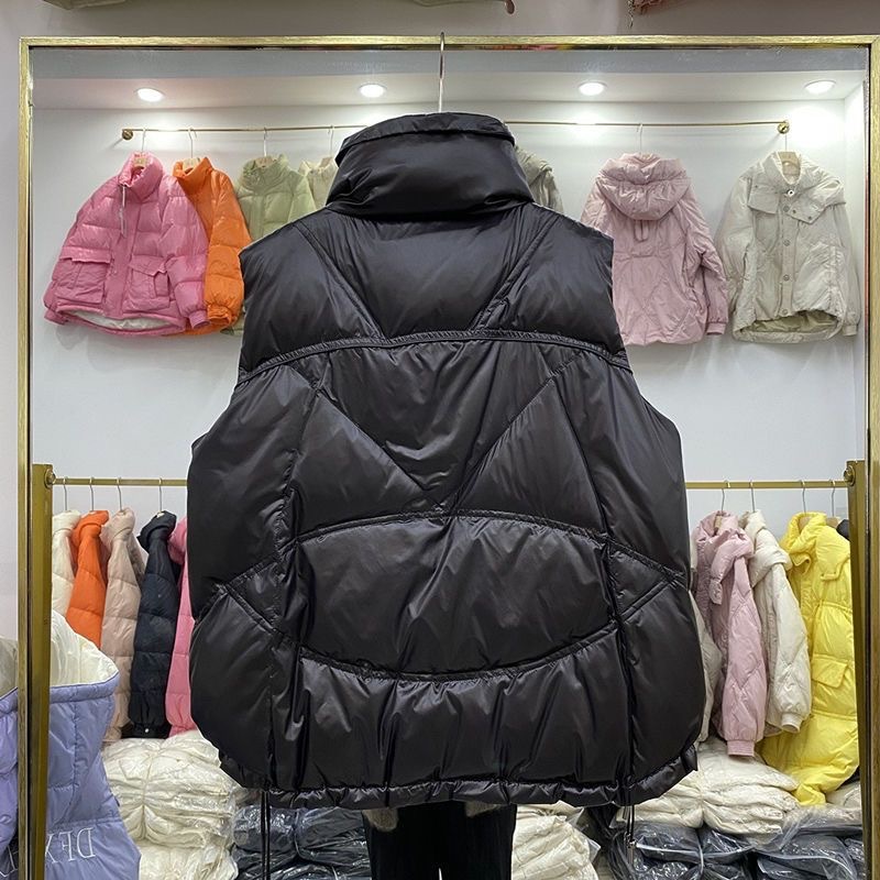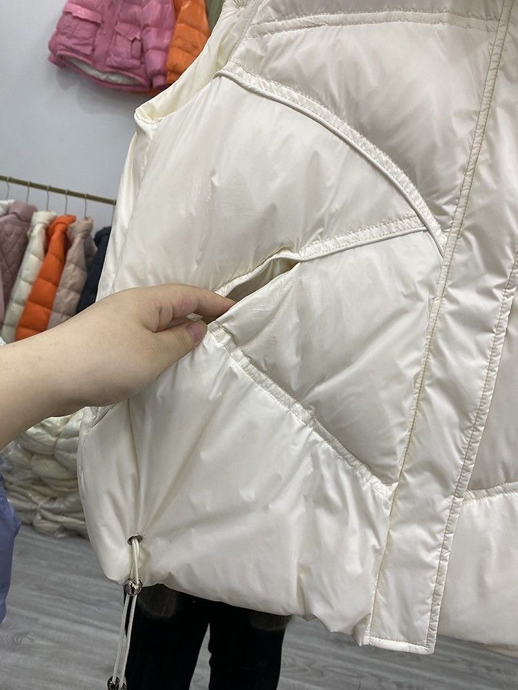 2023 시즌 새로운 화이트 오리 양털 여성용 조끼 보이지 않는 포켓 모든 매치 세련된 짧은 다운 재킷 조끼 겉옷 작은스토어 가기