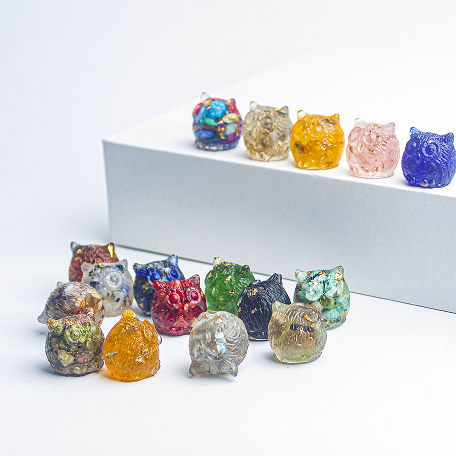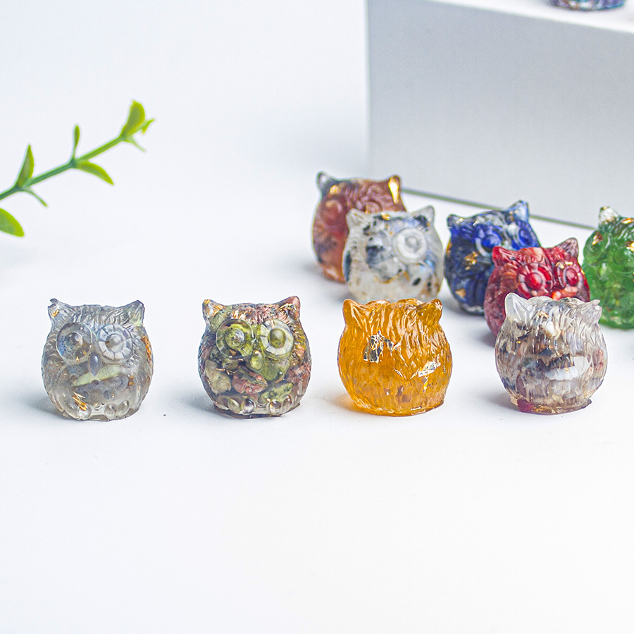 천연 크리스탈 자갈 올빼미 수제 접착제 떨어지는 동물 작은 사무실 데스크탑 장식품 휴대 전화 펜던트 보석 선물스토어 가기