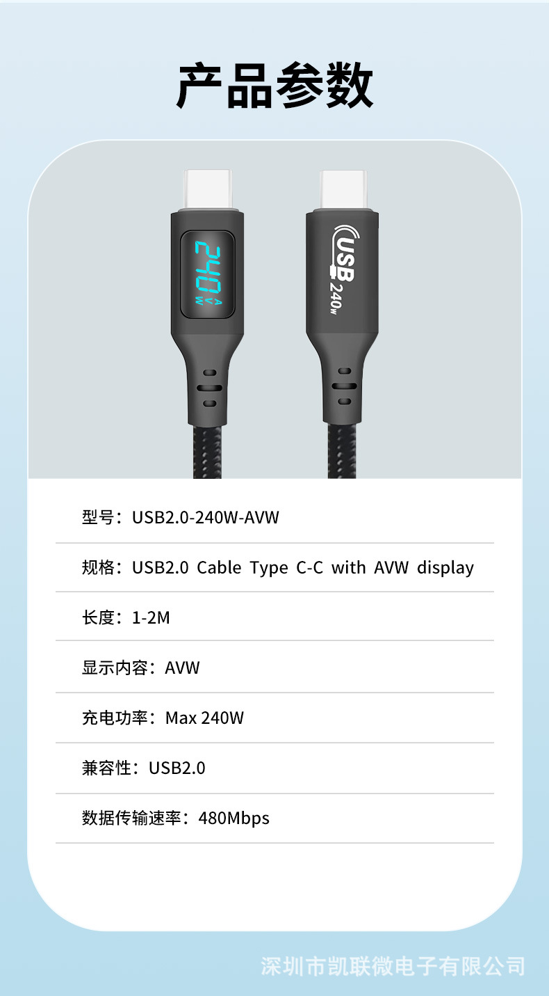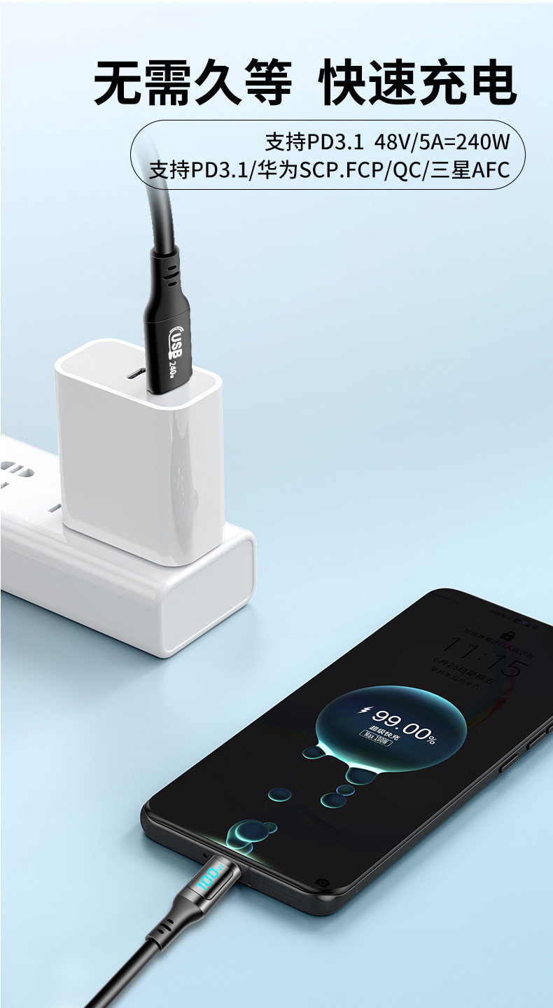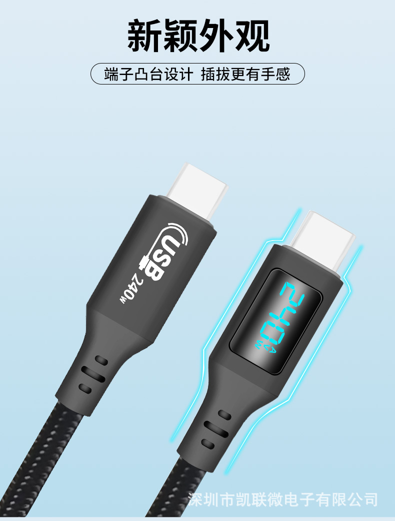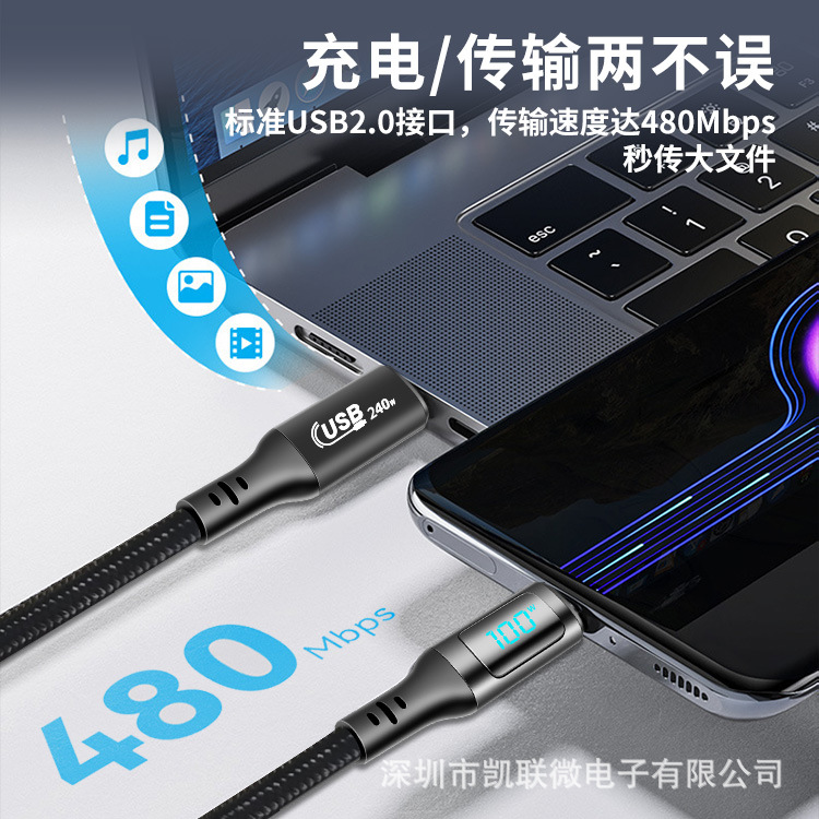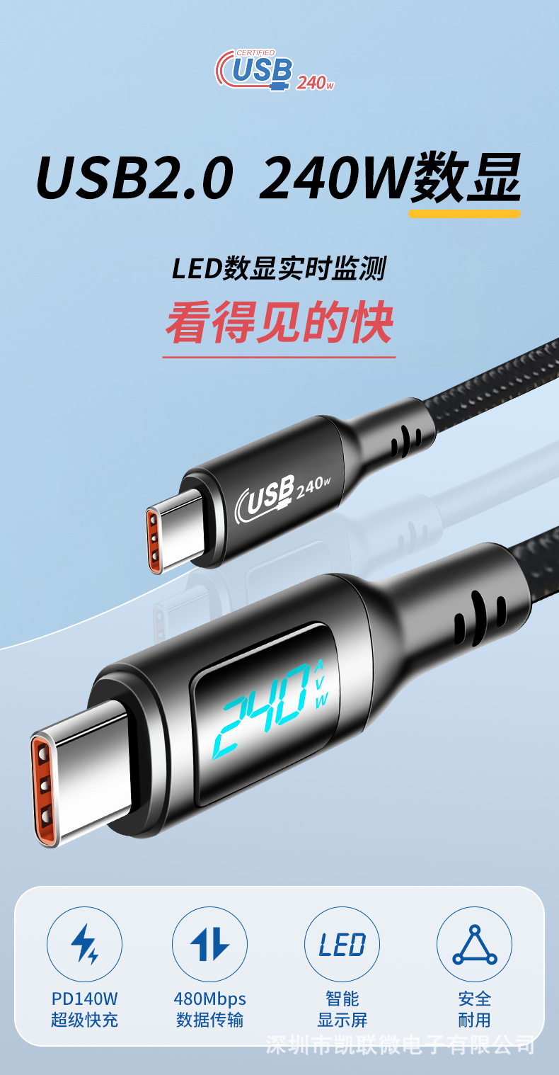 국경 간 인기 판매 USB2 디지털 디스플레이 초고속 충전 데이터 케이블 240W 모니터링 전류 전압 전력 듀얼 TYPEC스토어 가기
