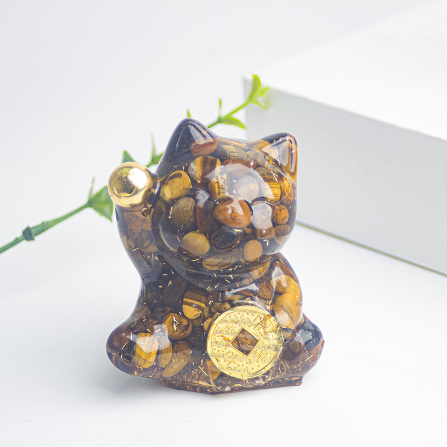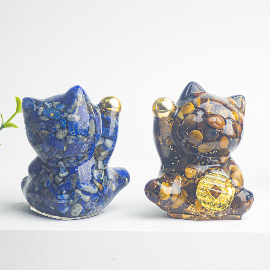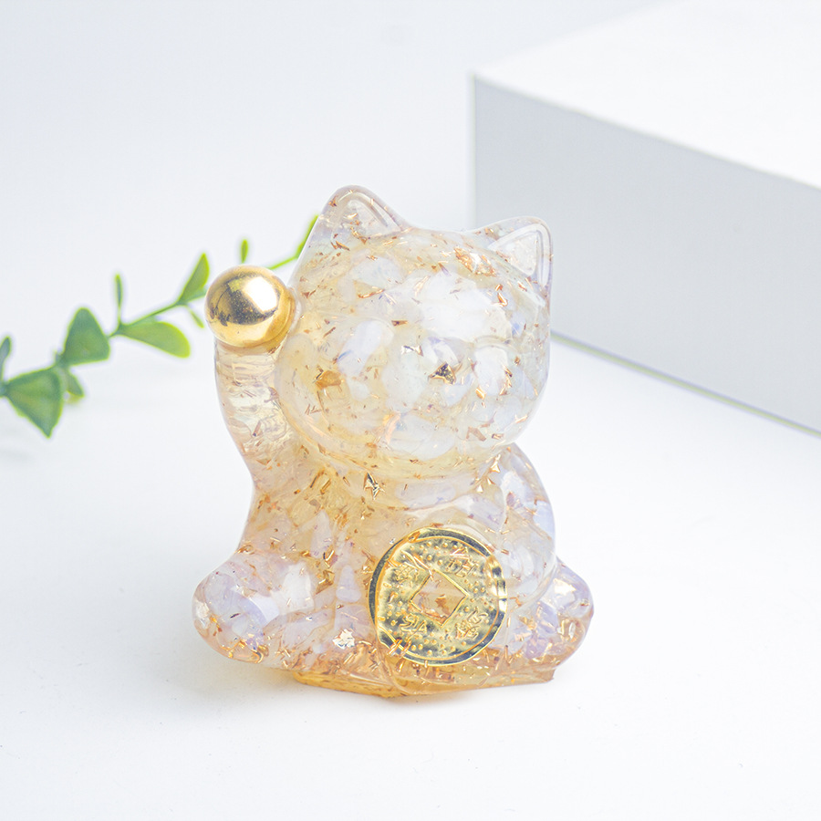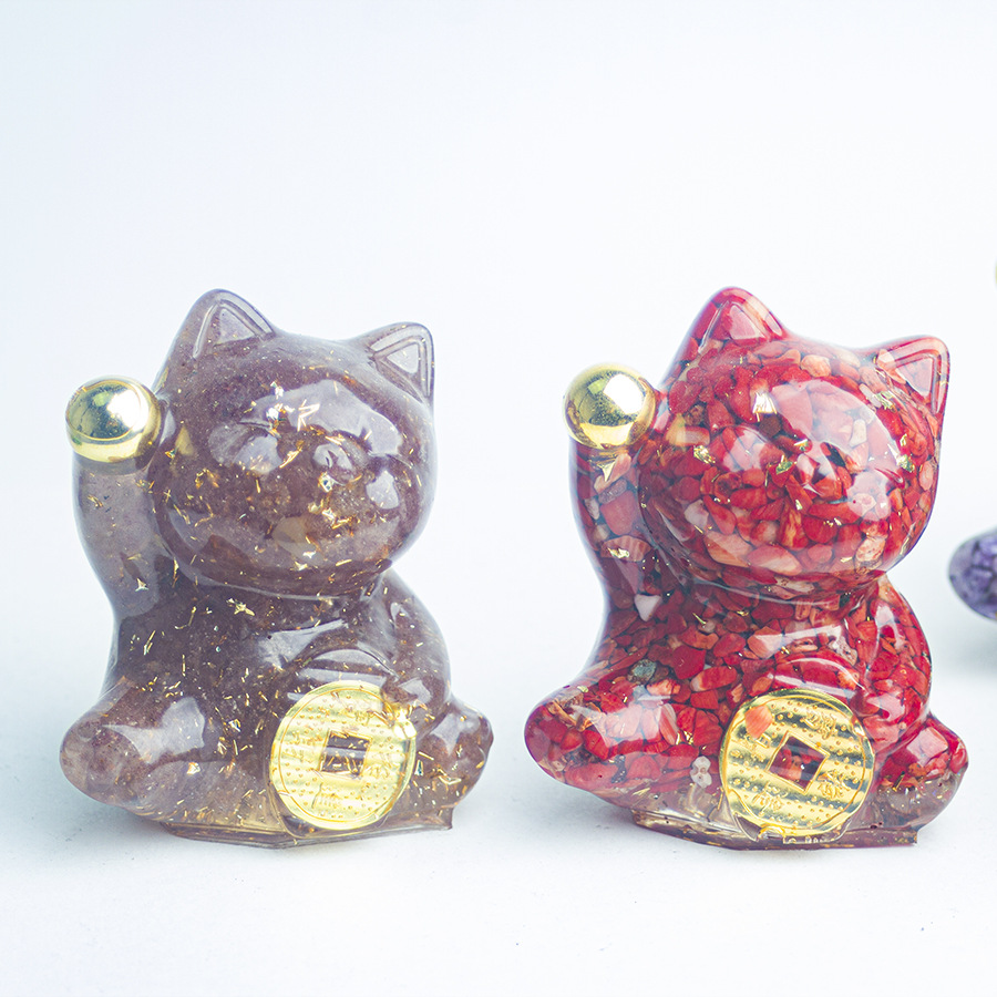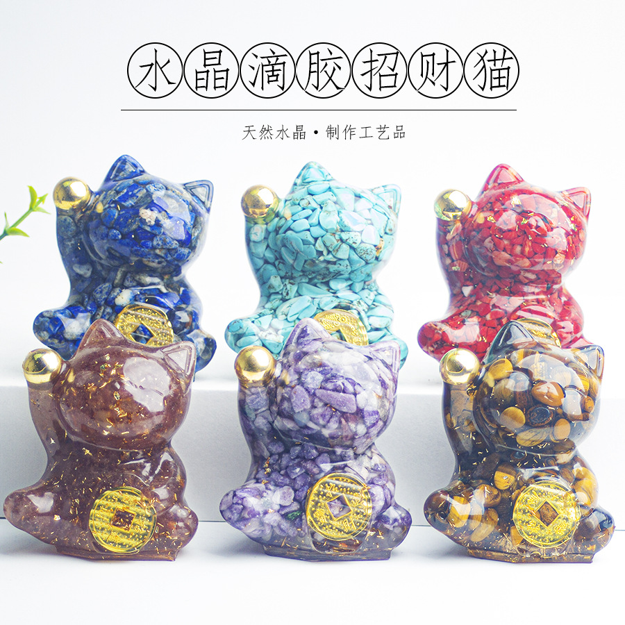 크로스 보더 천연 크리스탈 자갈 접착제 방울 행운의 고양이 사무실 홈 데스크탑 장식품 홈 장식 선물