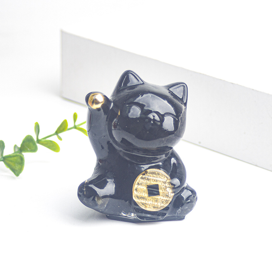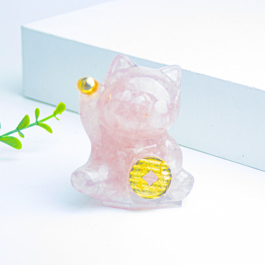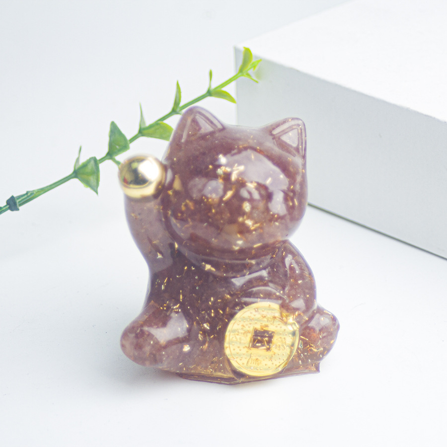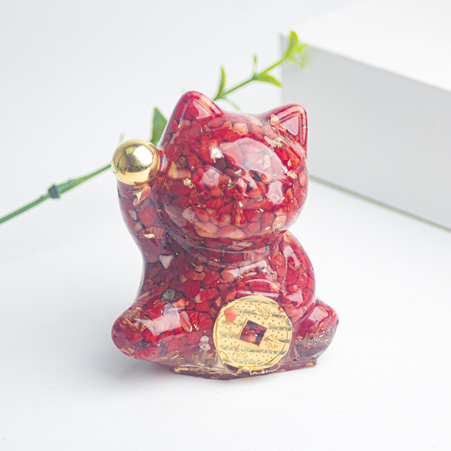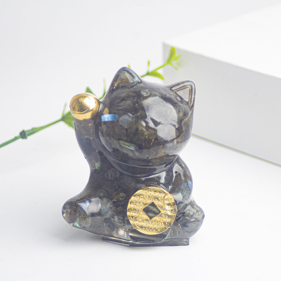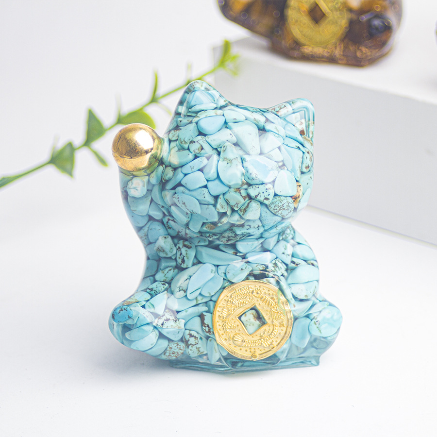크로스 보더 천연 크리스탈 자갈 접착제 방울 행운의 고양이 사무실 홈 데스크탑 장식품 홈 장식 선물