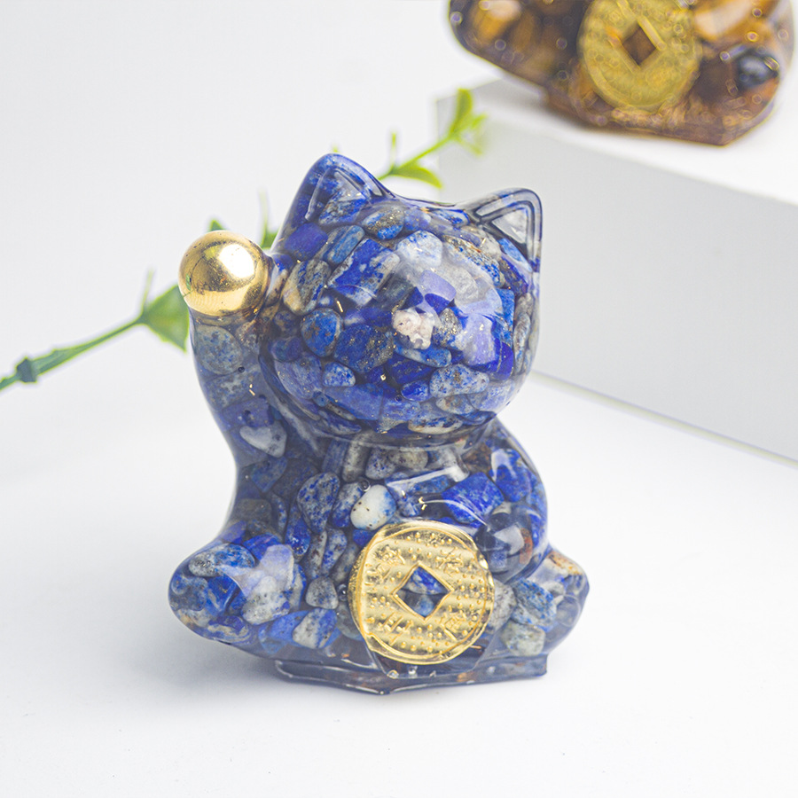 크로스 보더 천연 크리스탈 자갈 접착제 방울 행운의 고양이 사무실 홈 데스크탑 장식품 홈 장식 선물스토어 가기