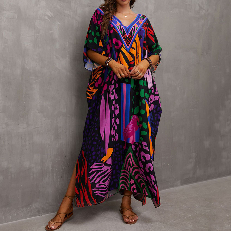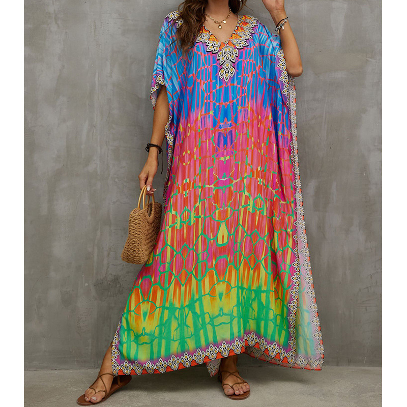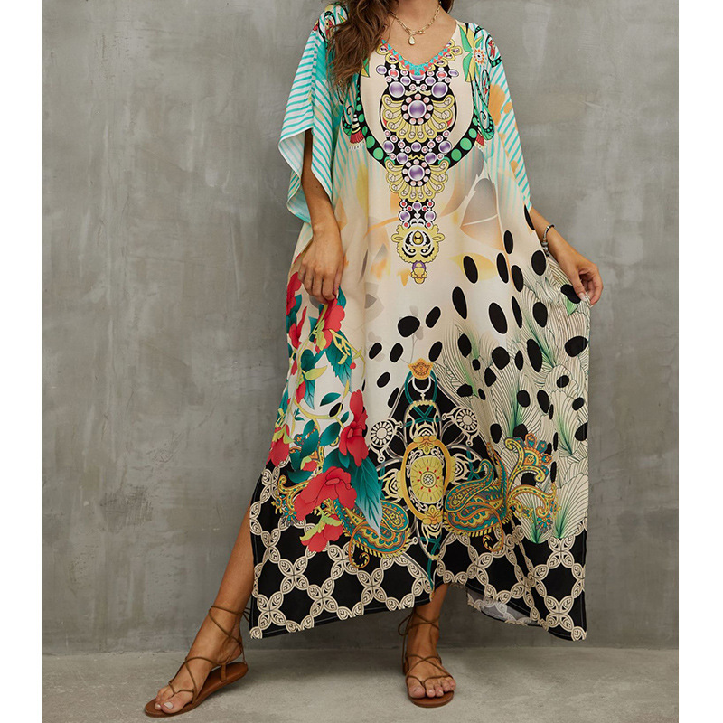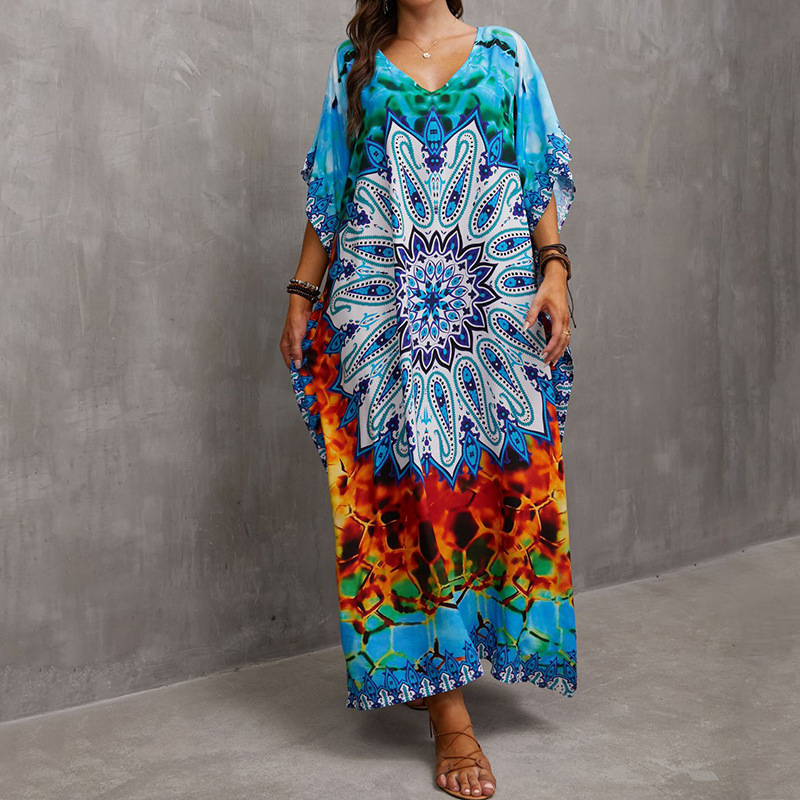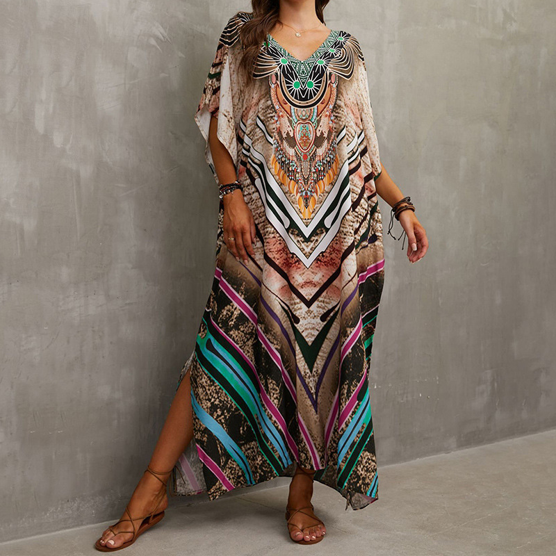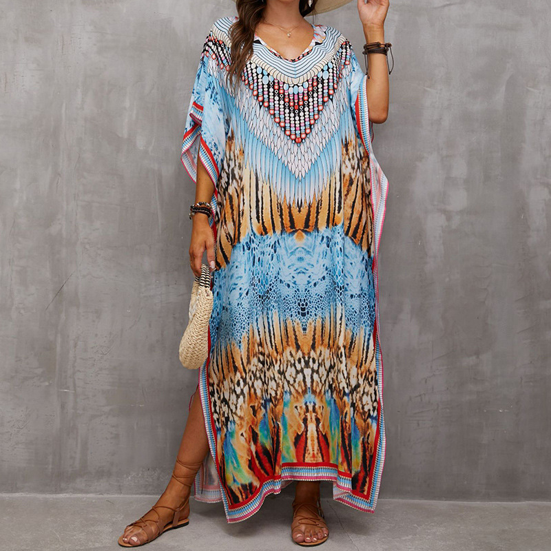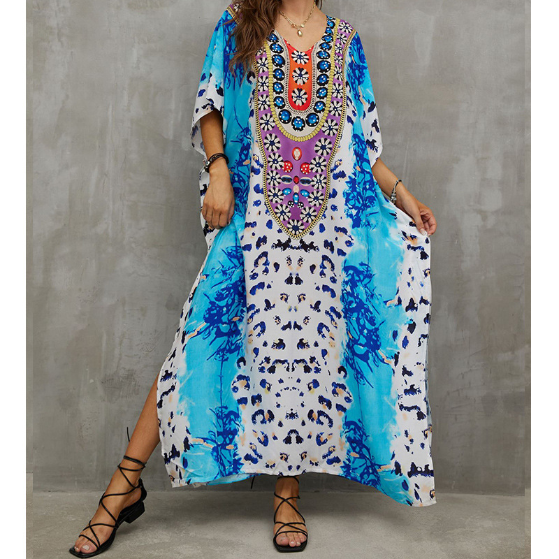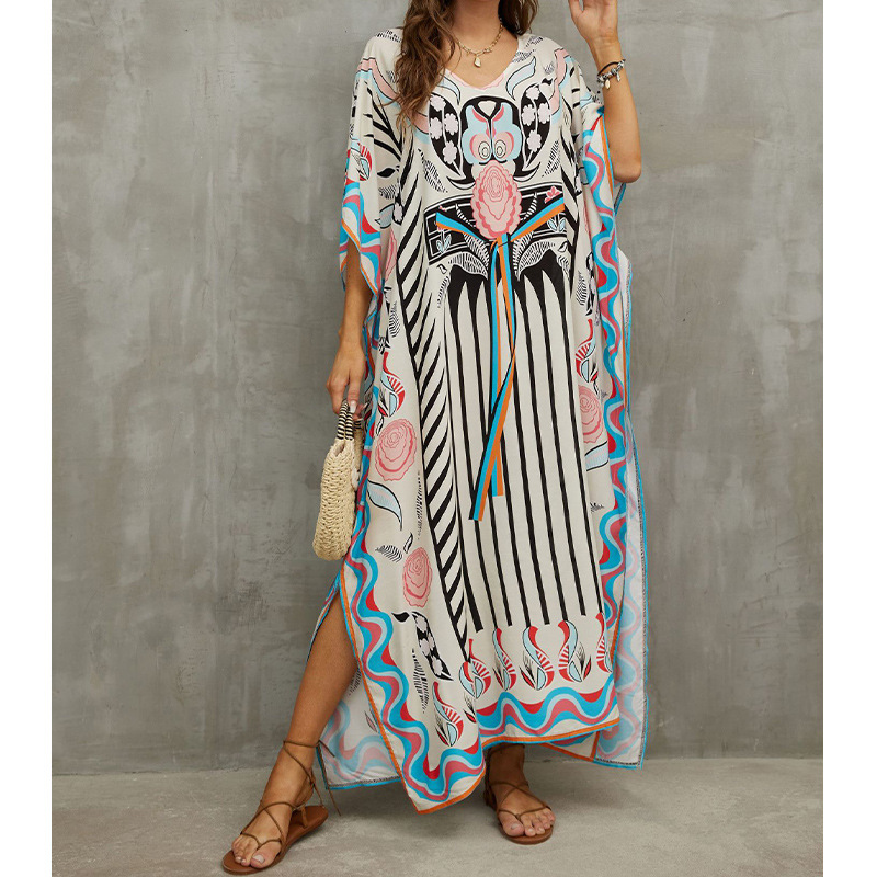 아마존 유럽과 미국 크로스 국경 외국 무역 해변 휴가 해변 블라우스 레이온 위치 인쇄 휴가 가운 원피스