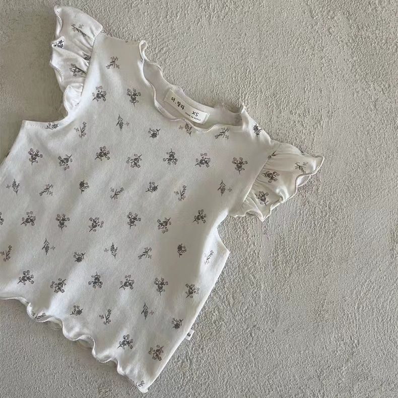 한국식 인 소년 소녀 아기 얇은 면 소프트 플로럴 캐주얼 라운드 넥 반팔 티셔츠 컬 슬리브 올 매치