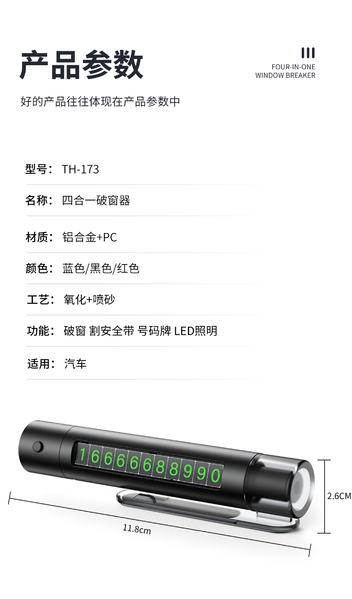 • 중국 빨강 [깨진 창문 + 안전 벨트 + 번호 + 조명] 4 in One