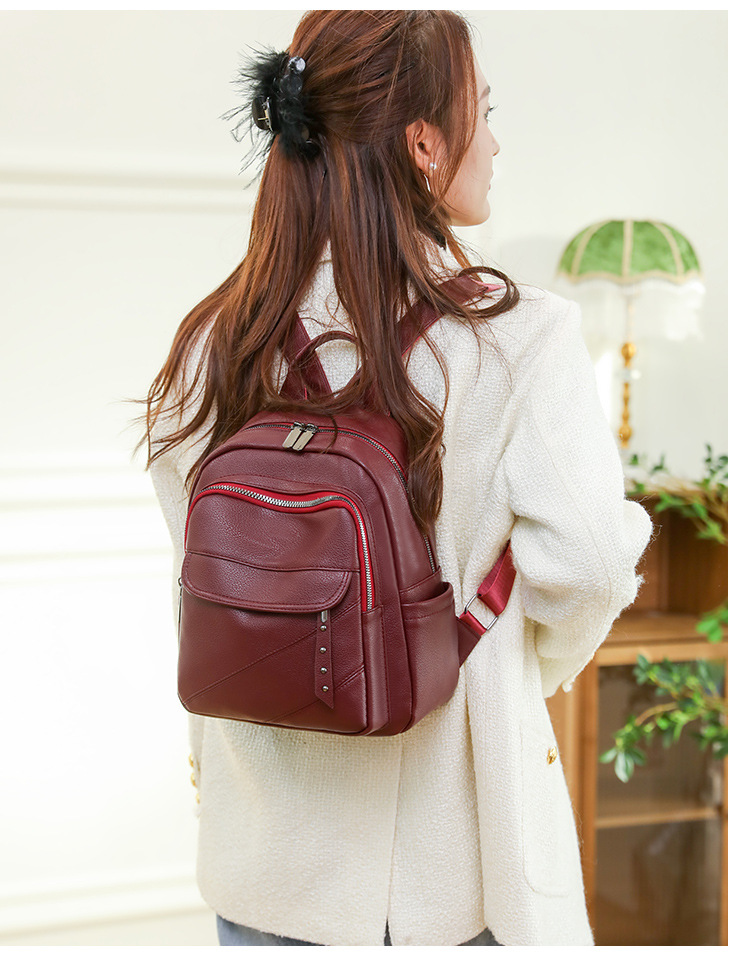 크로스 보더 백팩 여성용 한국식 2023 새로운 패션 부드러운 가죽 여행 배낭 고급 감각 캐주얼 학생 책가방 트렌디스토어 가기