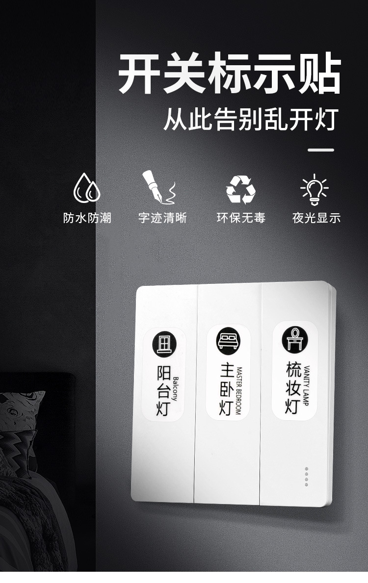 발광 스위치 로고 스티커 홈 장식 라벨 스티커 크리에이티브 스위치 스티커 크리에이티브 자체 접착 벽 스티커 표시기 스티커