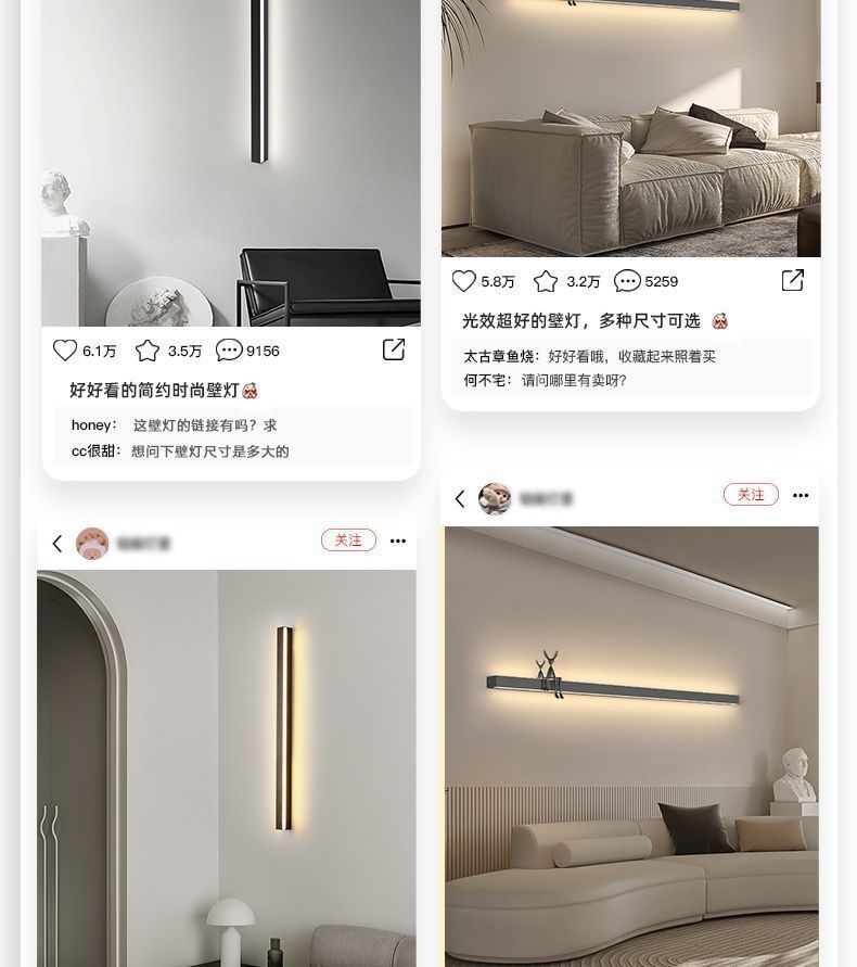 간단한 벽 램프 침대 옆 침실 플러그 led 선형 램프 장식 분위기 거실 TV 배경 벽 램프 스트립스토어 가기