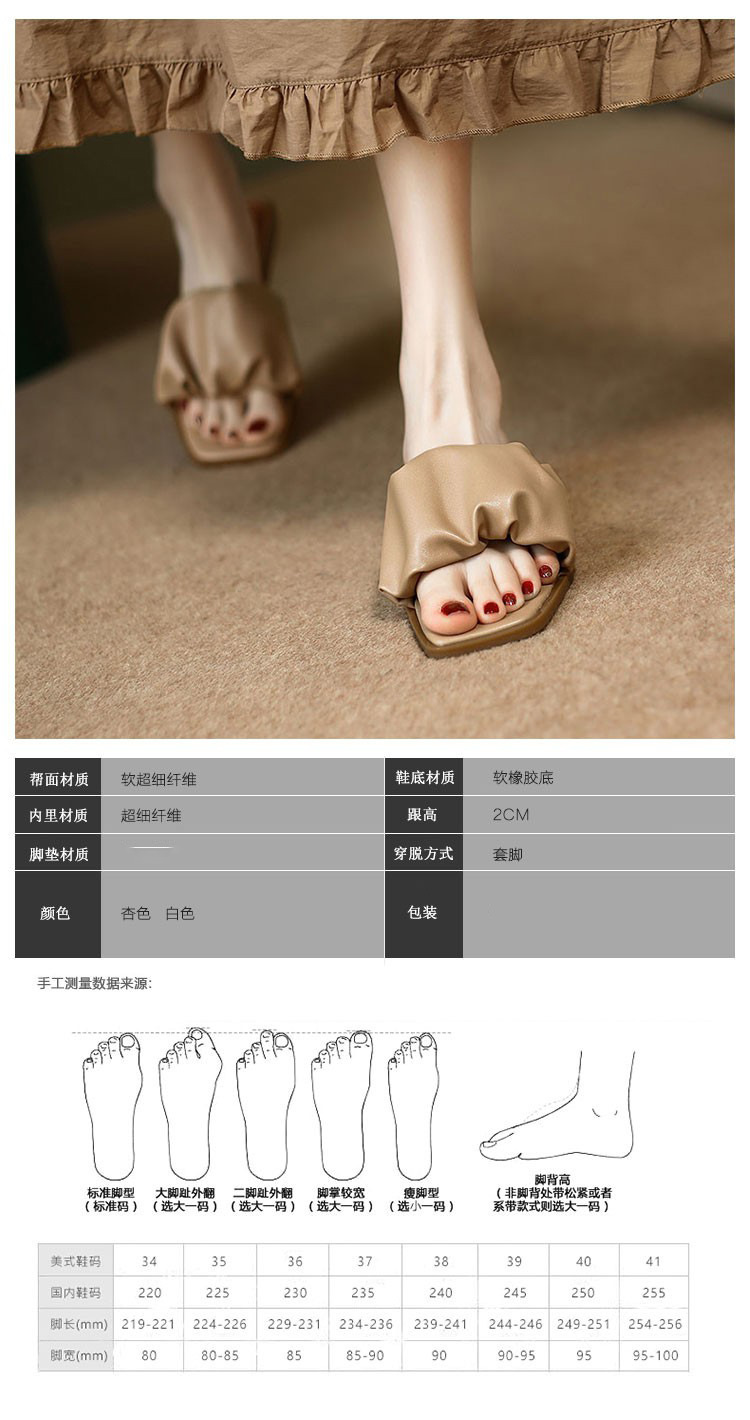 若儋原创 巨软~ 潮踩屎感皱褶方头露趾凉拖鞋女夏季外穿一字拖鞋