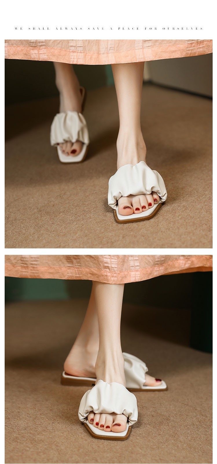 거대한 소프트 ~ 조수 느낌 주름 스퀘어 오픈 토 샌들 여성 여름 아우터 한 단어 슬리퍼