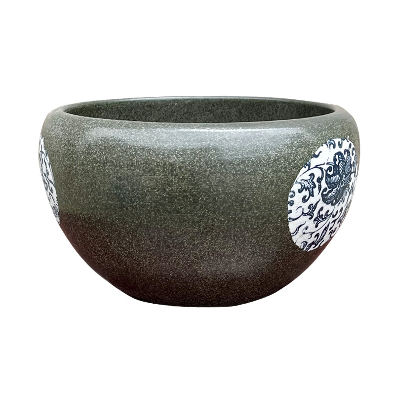 Jingdezhen 세라믹 어항 손으로 그린 데스크탑 금붕어 거북 탱크 23cm 빈티지 물 연꽃 수선화 녹색 화분