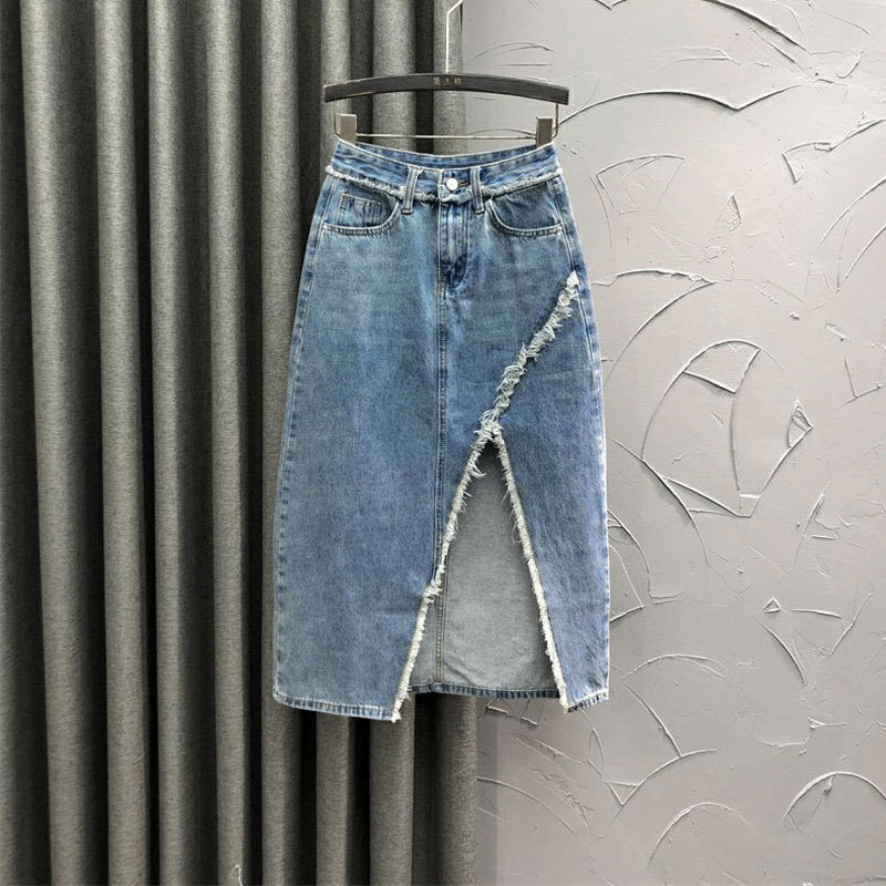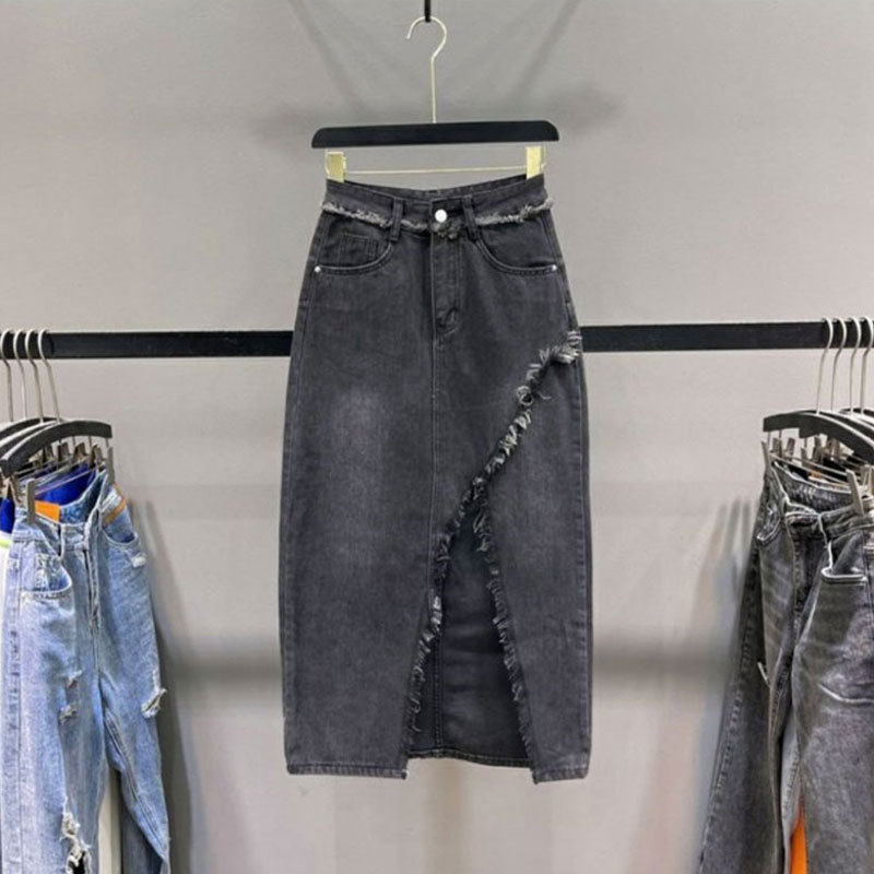 분할 불규칙한 데님 스커트 a-모양 반 길이 사이버 연예인 원시 가장자리 하이 웨이스트 스타일 뜨거운 소녀 엉덩이 복고풍 중간 길이 스커트스토어 가기