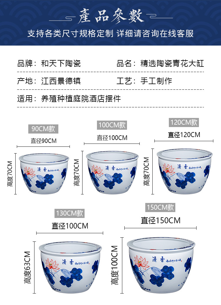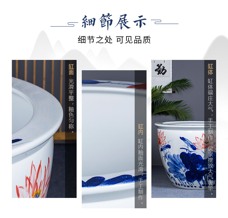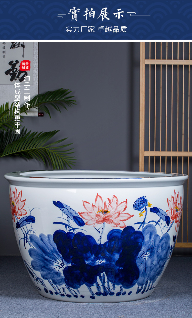 Jingdezhen 세라믹 대형 탱크 안뜰 풍수 탱크 초대형 파란색과 흰색 도자기 문 바다 물고기 탱크 물 연꽃 탱크 장식품