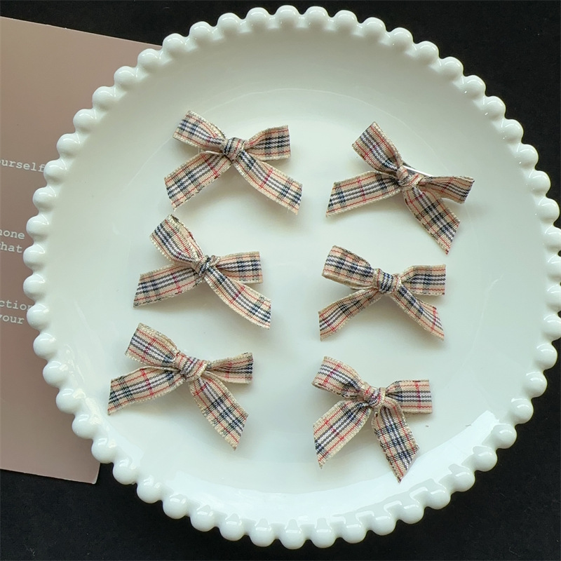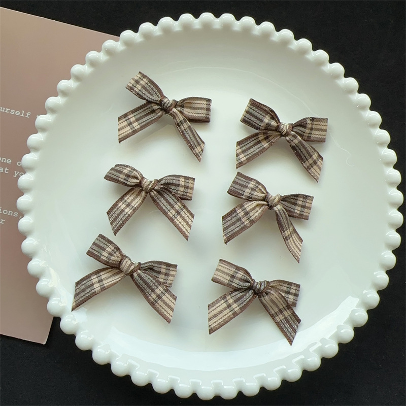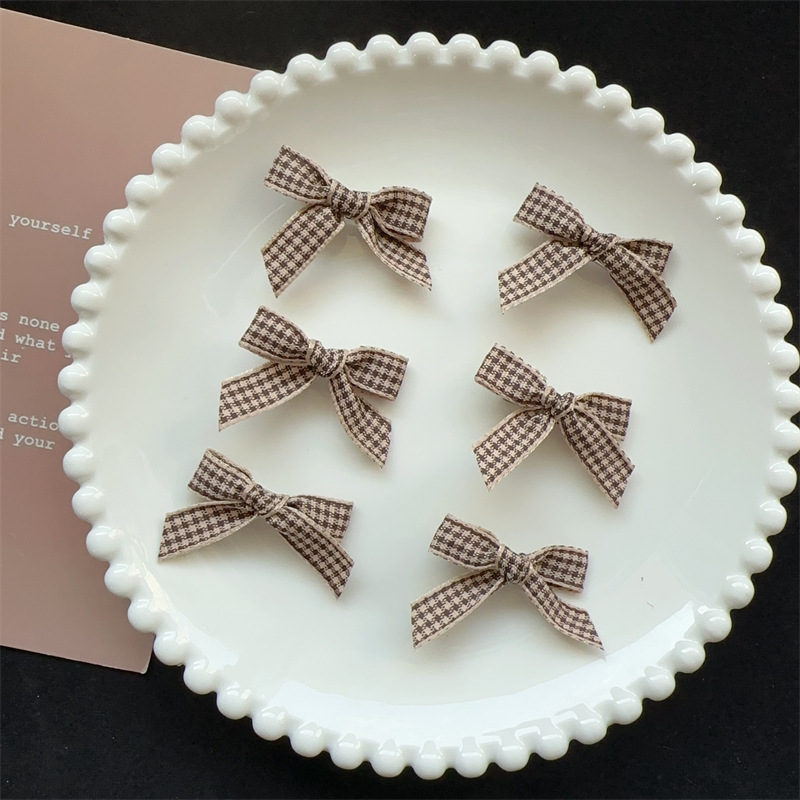 • 3cm 깊은 커피 체크 패턴 작은 나비 머리핀 1