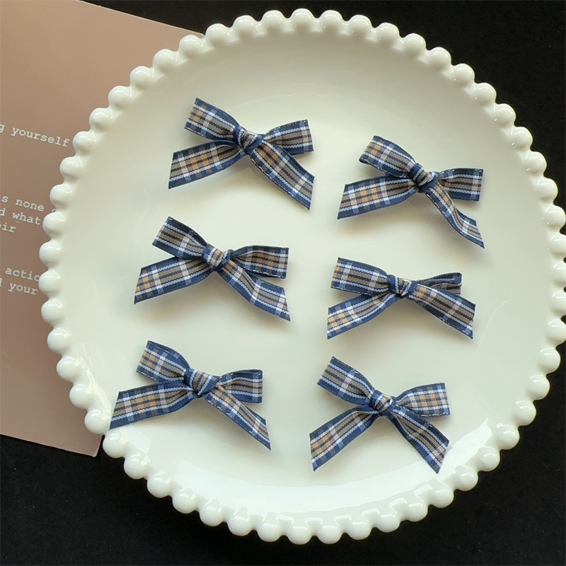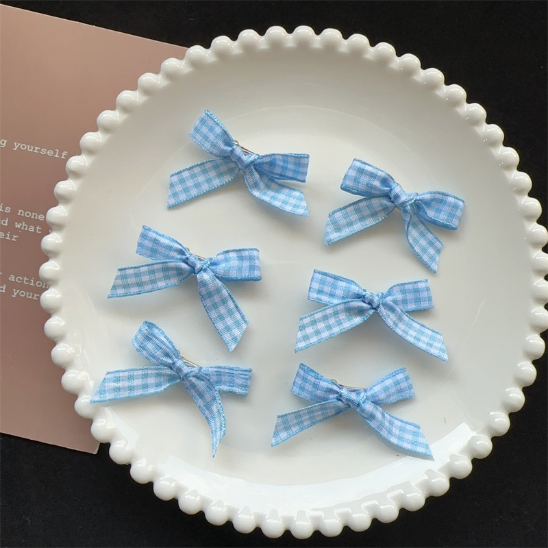 • 3cm 깊은 파란색 체크 작은 나비 머리핀 1