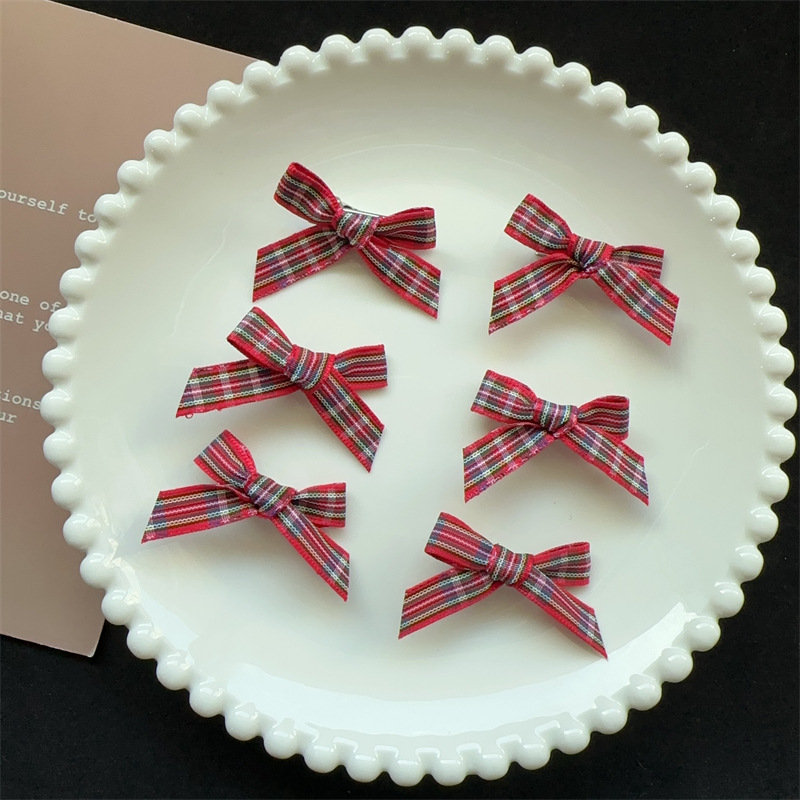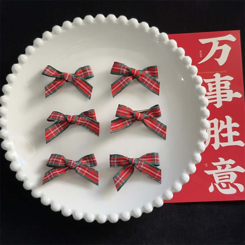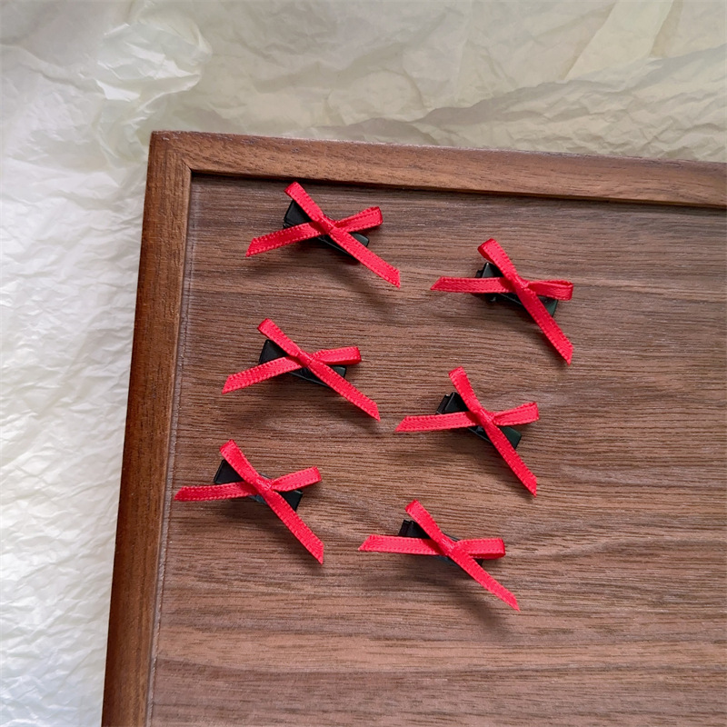 • 3cm 붉은 격자 작은 나비 머리핀 1