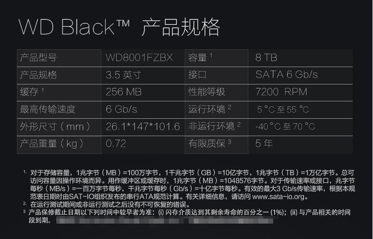 SATA 서쪽 검은 디스크 1T/2T/4T/6T/8T 6 Gb/s 7200 고성능 저장스토어 가기