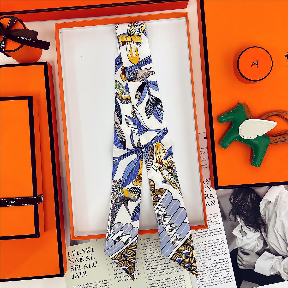 작은 리본 뽕나무 실크 스카프 모든 매치 실크 스카프 여성용 봄과 가을 얇은 실크 스카프 헤어 밴드 New 2023