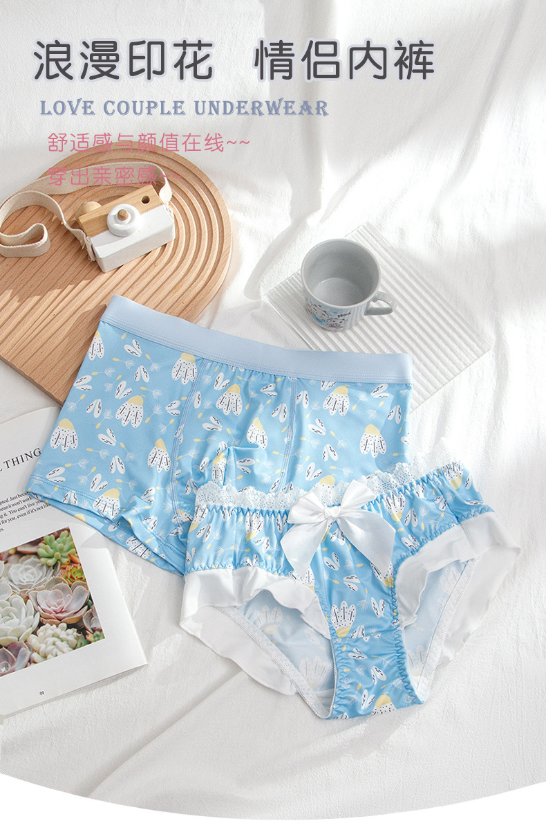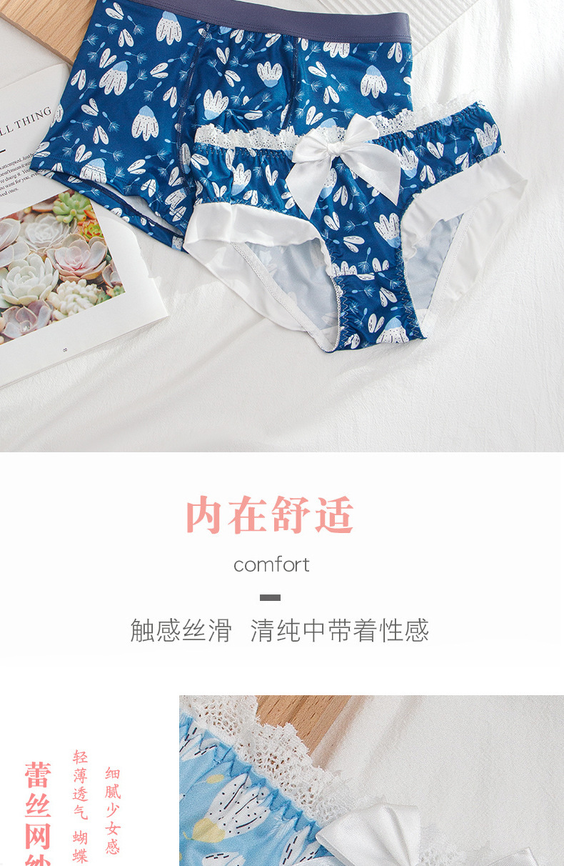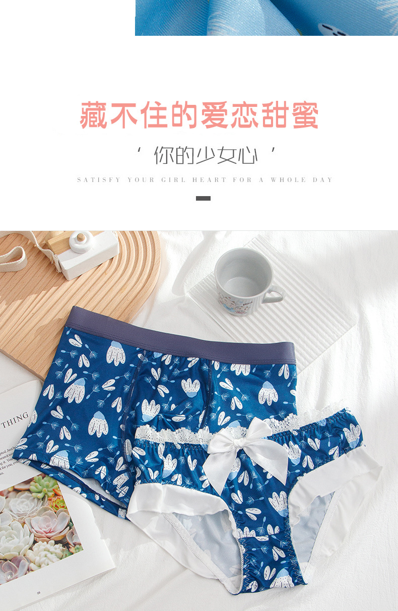 커플 속옷 순수한 욕망 달콤한 일본 소녀의 여름 귀여운 삼각형 반바지 편안한 통기성 중간 허리 남성 복서 반바지