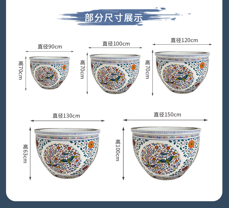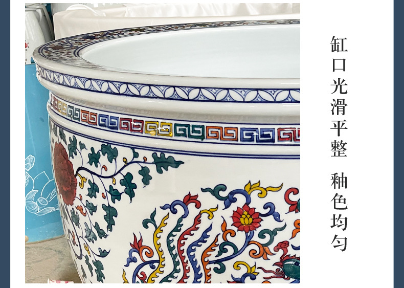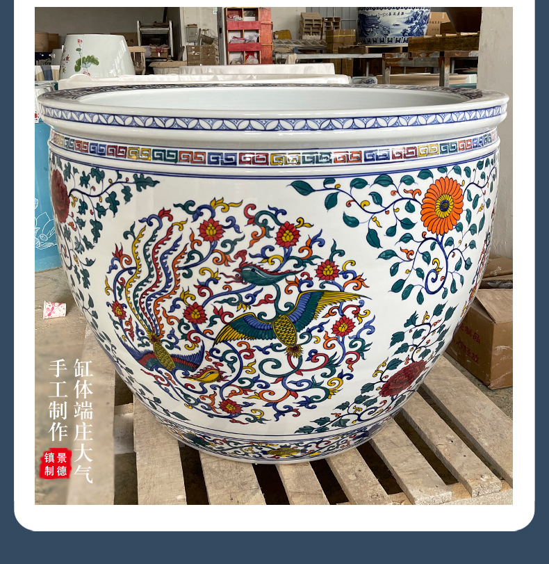 경덕진 도자기 대형 수제 핑크색 그림과 글씨가 있는 수조, 거실 장식품, 잉어와 연꽃을 키우는 수조, 정원 풍수 어항스토어 가기