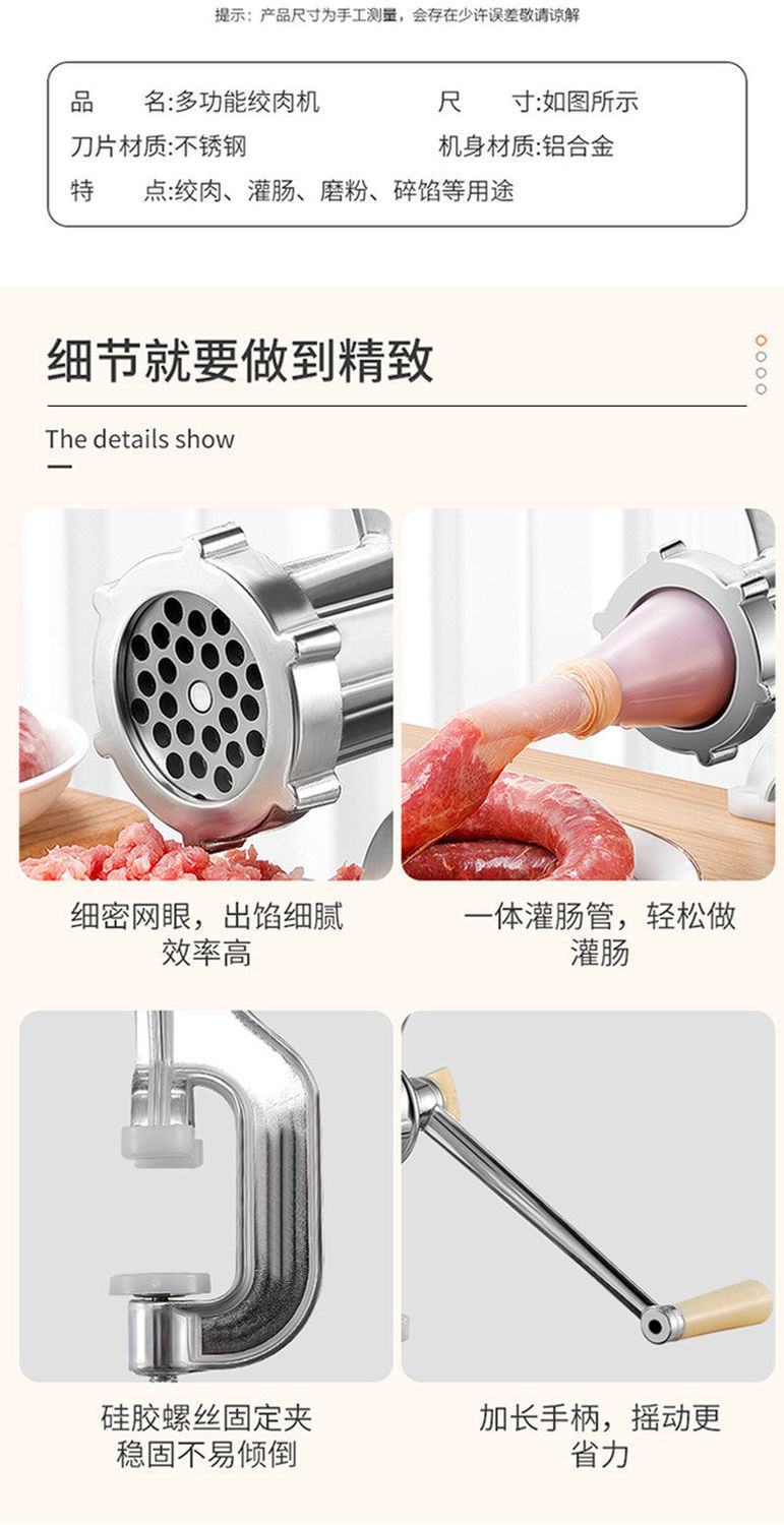 수동 고기 분쇄기 가정용 소시지 기계 칠리 고기 분쇄기 마늘 소시지 작은 소시지 공장 콘센트스토어 가기