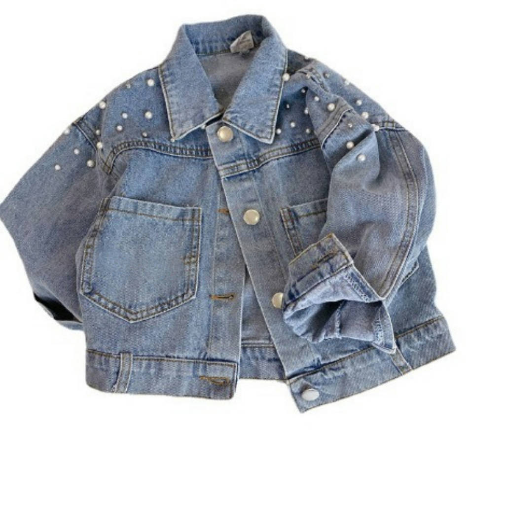 한국 스타일 아동 의류 패션 소녀 재킷 2025 봄과 가을 새로운 진주 어린이 데님 재킷 서양식 탑 도매스토어 가기