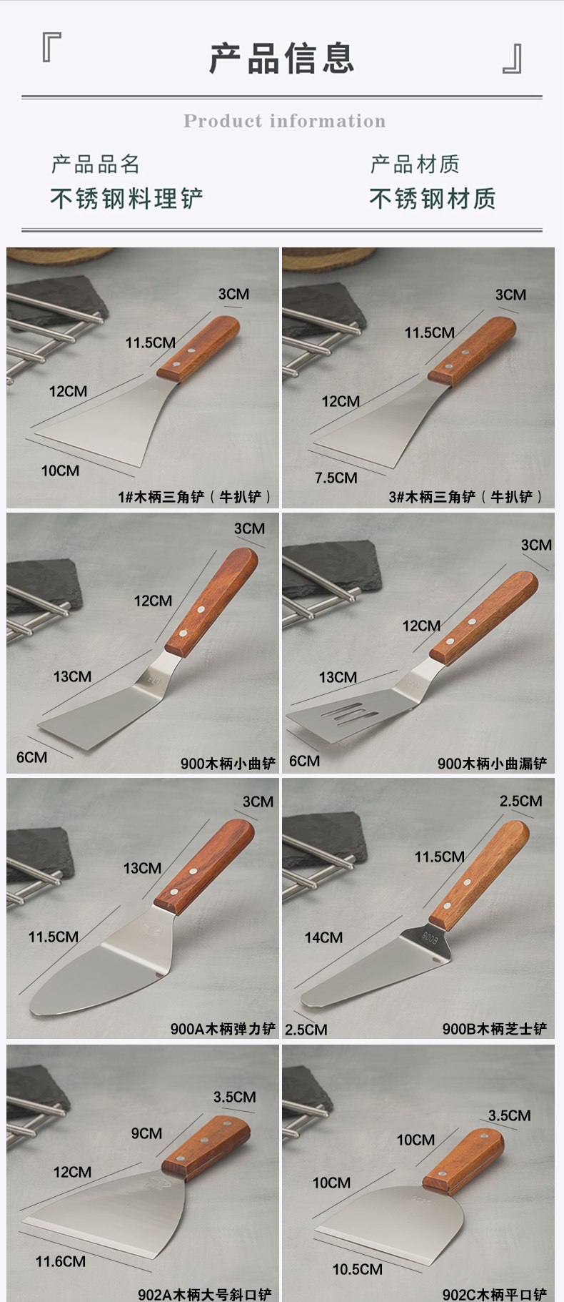 도매 스테인레스 스틸 Teppanyaki 삽 주방 용품 팬케이크 스톨 도구 티라미수 삽 프라이드 아이스 프라이드 피자 스테이크