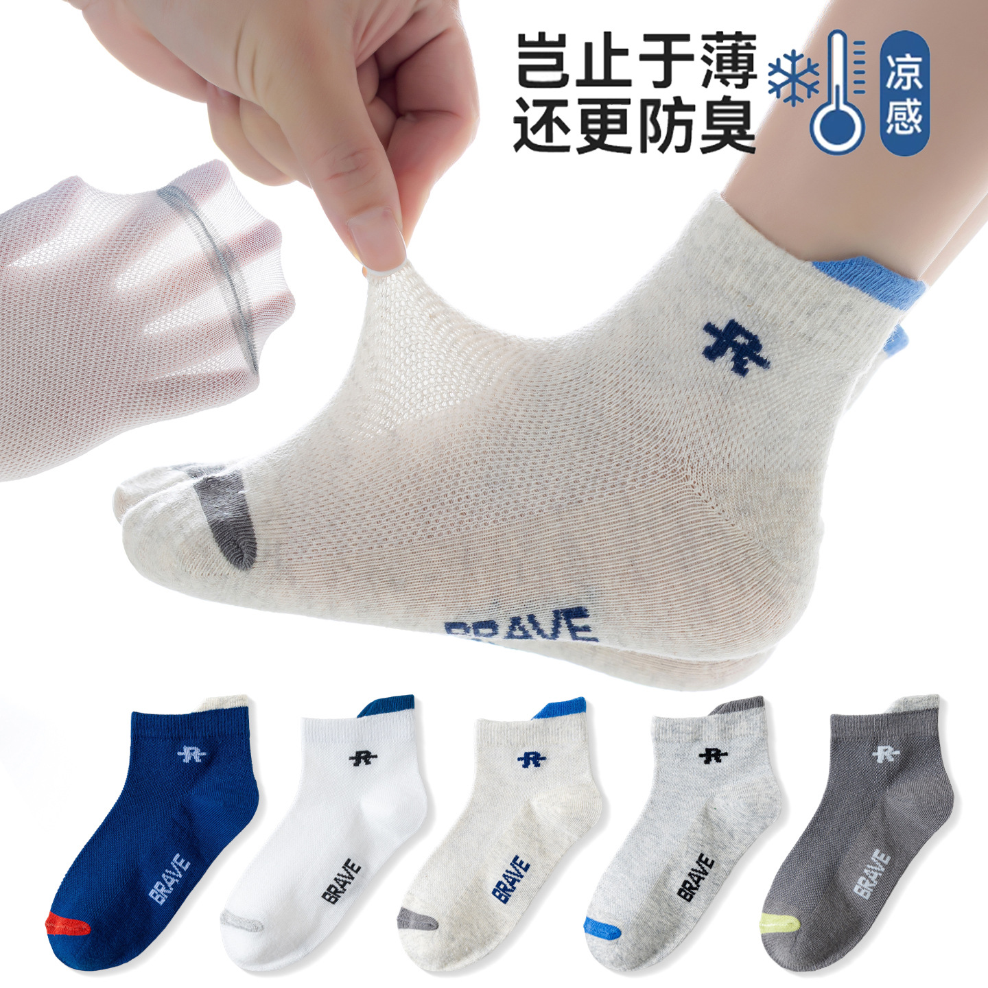 어린이 양말 소년 여름 얇은 메쉬 양말 통기성 편지 빗질면 중대형 어린이 소년 어린이면 양말