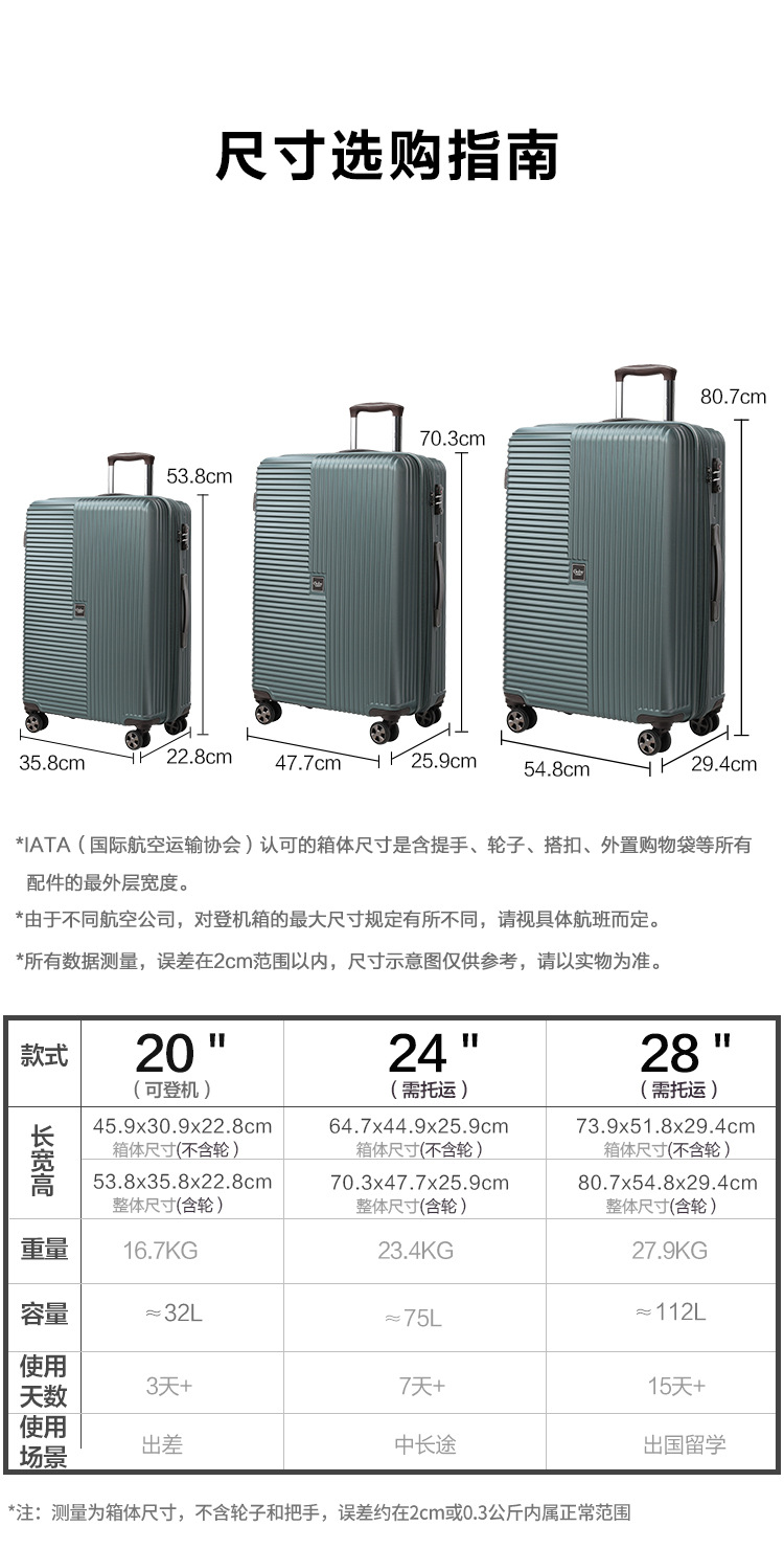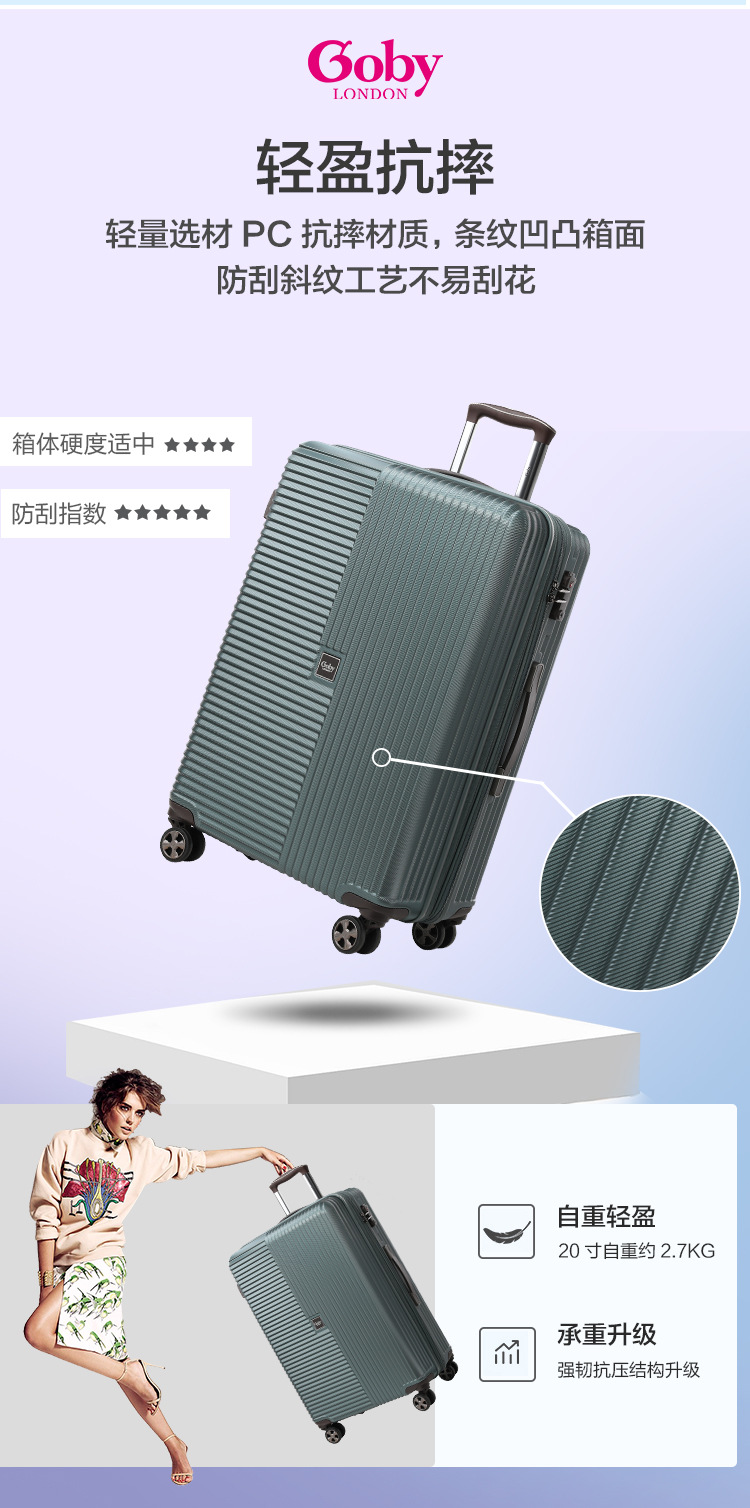 영국 고비 수하물 탑승 단거리 여행 가방 대용량 초경량 무소음 범용 휠 트롤리 케이스