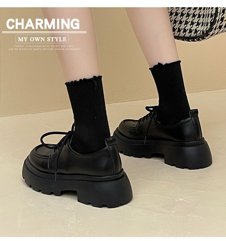 두꺼운 밑창 작은 가죽 신발 2024 새로운 봄과 가을 복고풍 영국 스타일의 jk 신발 블랙 올 매치 스커트 레이스 업 로퍼스토어 가기