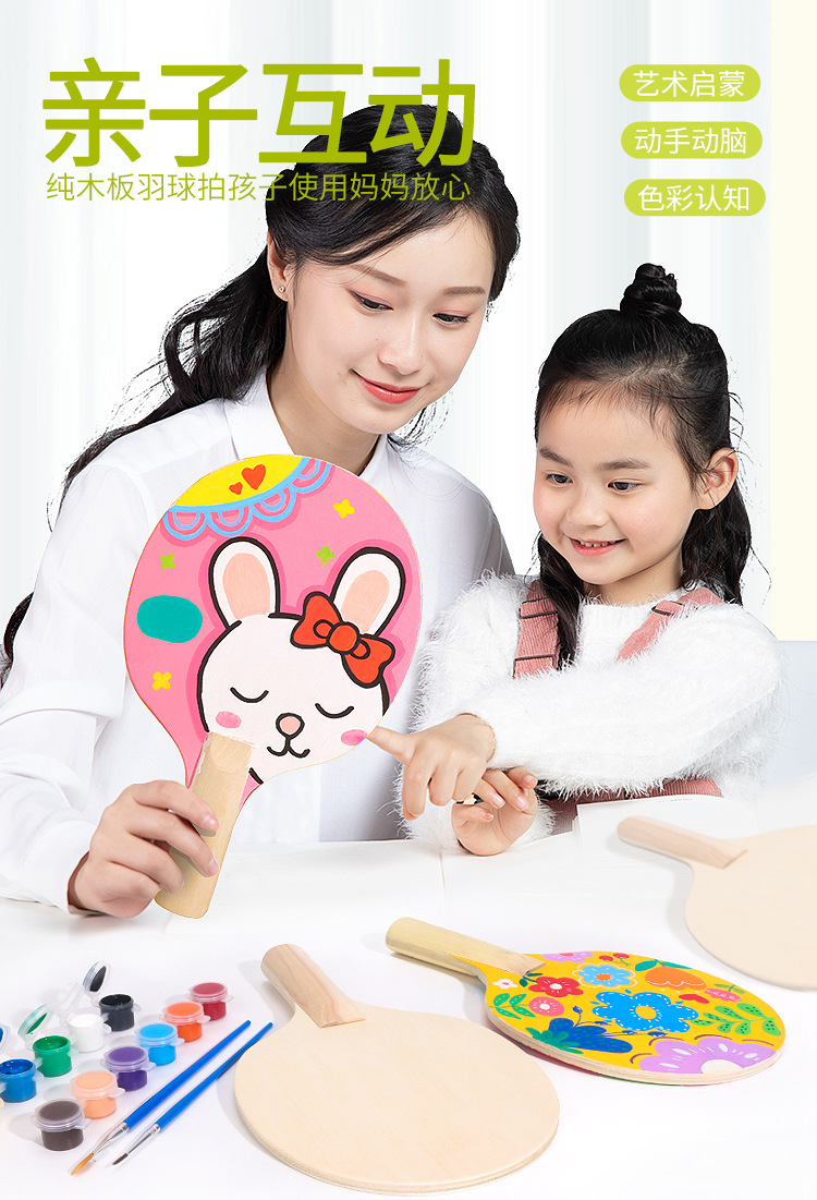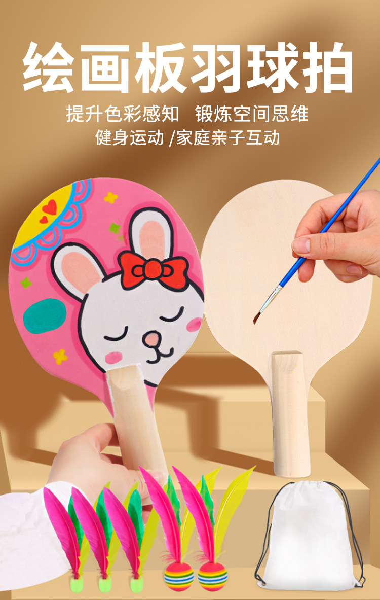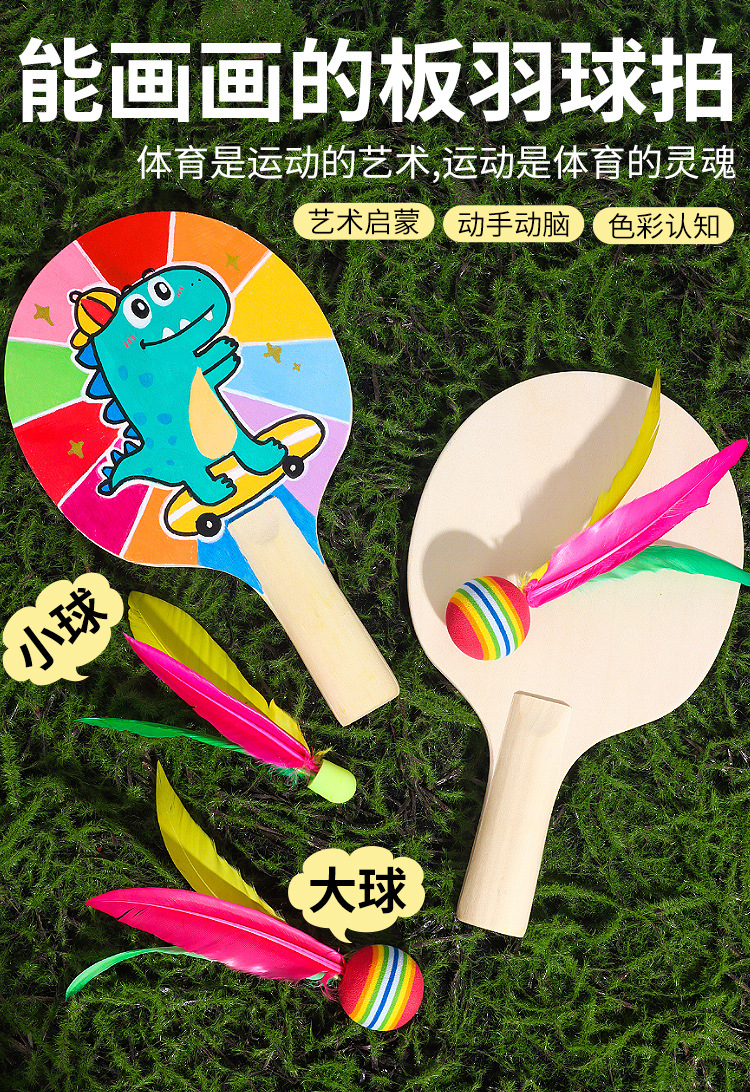 어린이 수제 DIY 보드 배드민턴 라켓 세트 셔틀콕 셔틀콕 라켓 그림이 낙서 될 수 있습니다 크리켓 실내 3 헤어 라켓스토어 가기