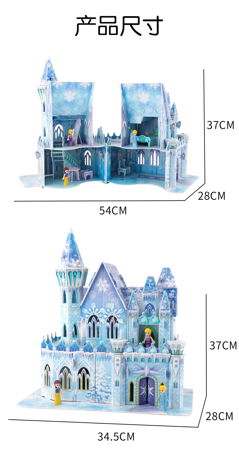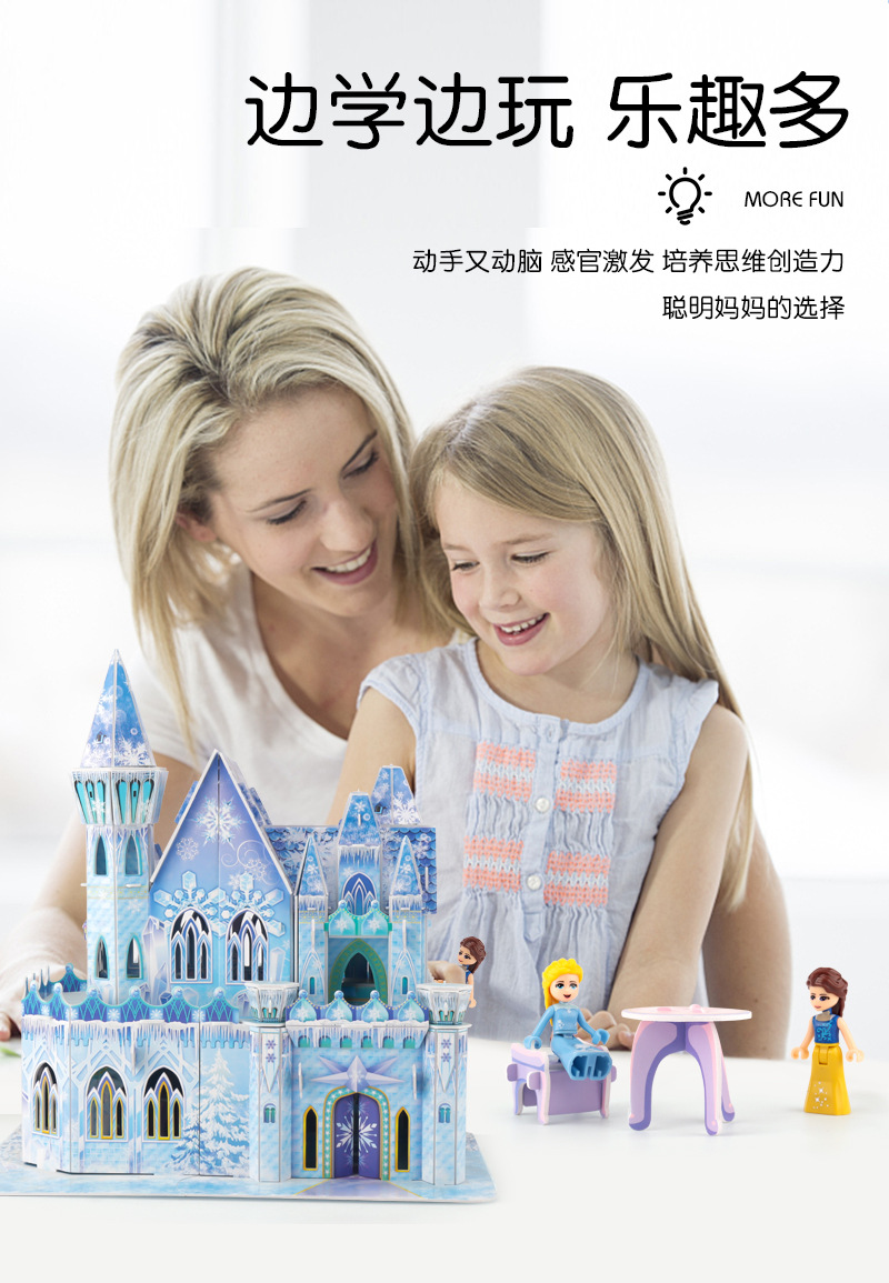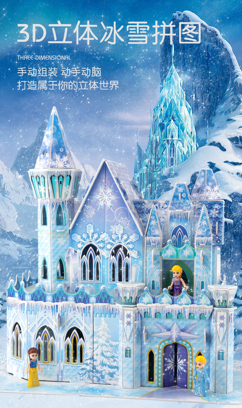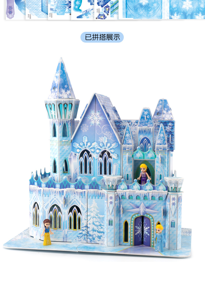 3D 입체 퍼즐 얼음과 눈 공주 성 어린이 교육 퍼즐 3~6세 8~10세 수제 조립 모델 선물