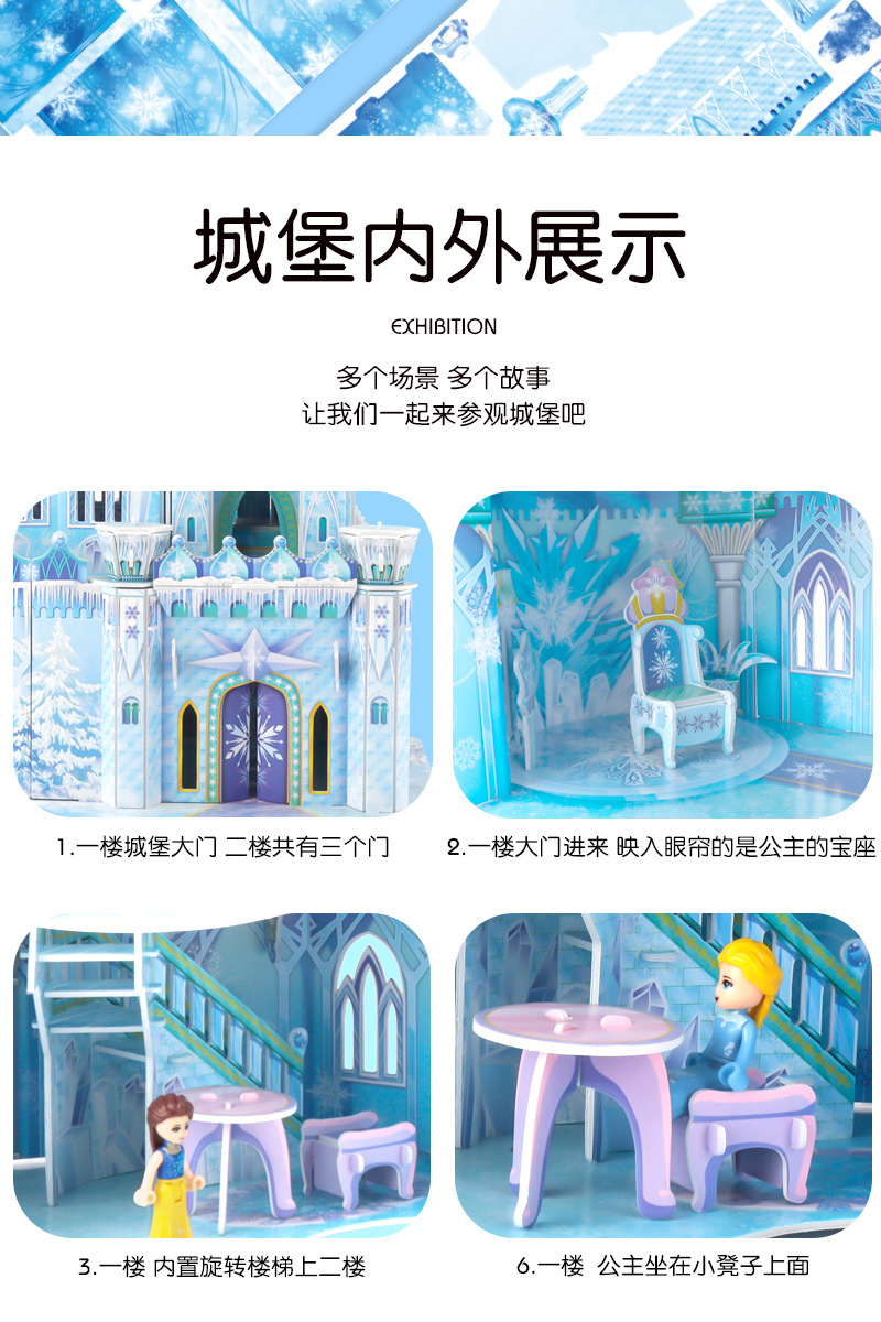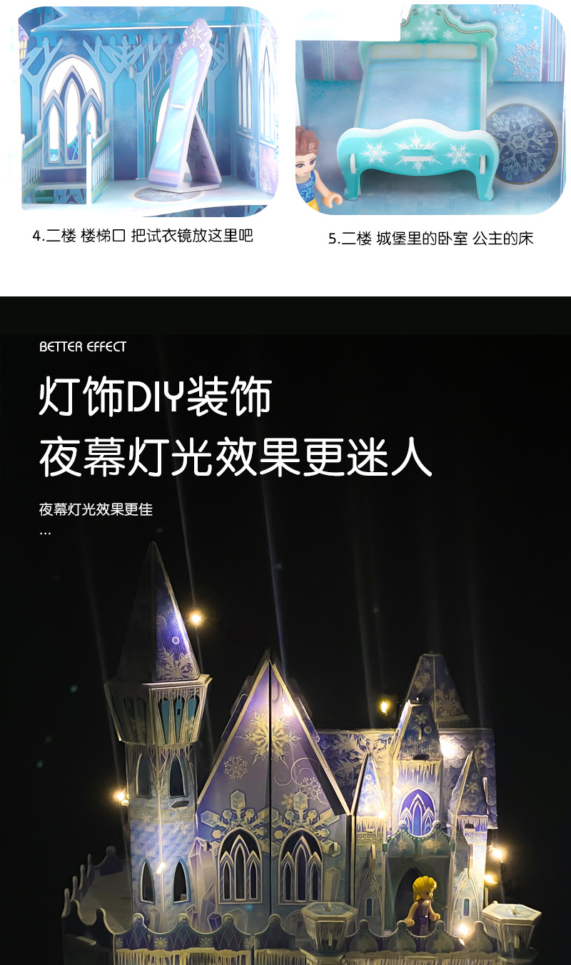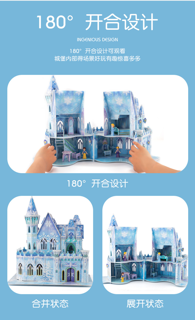 3D 입체 퍼즐 얼음과 눈 공주 성 어린이 교육 퍼즐 3~6세 8~10세 수제 조립 모델 선물