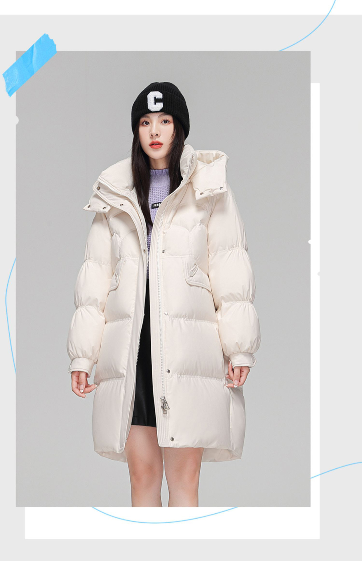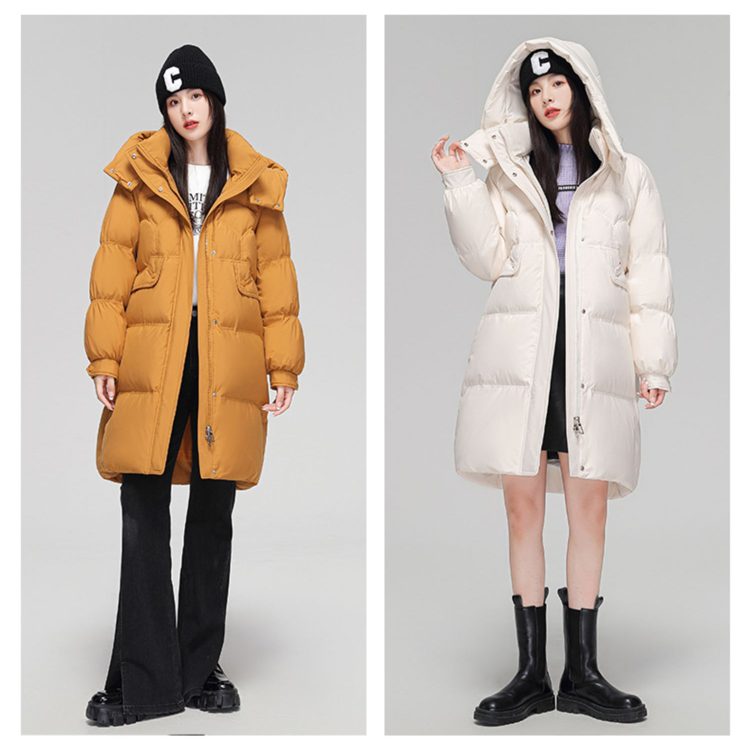 가을/겨울 2022 다운 재킷 여성용 겨울 중간 길이 스탠드 칼라 모자 두꺼운 빵 의류 따뜻한 겨울 코트스토어 가기