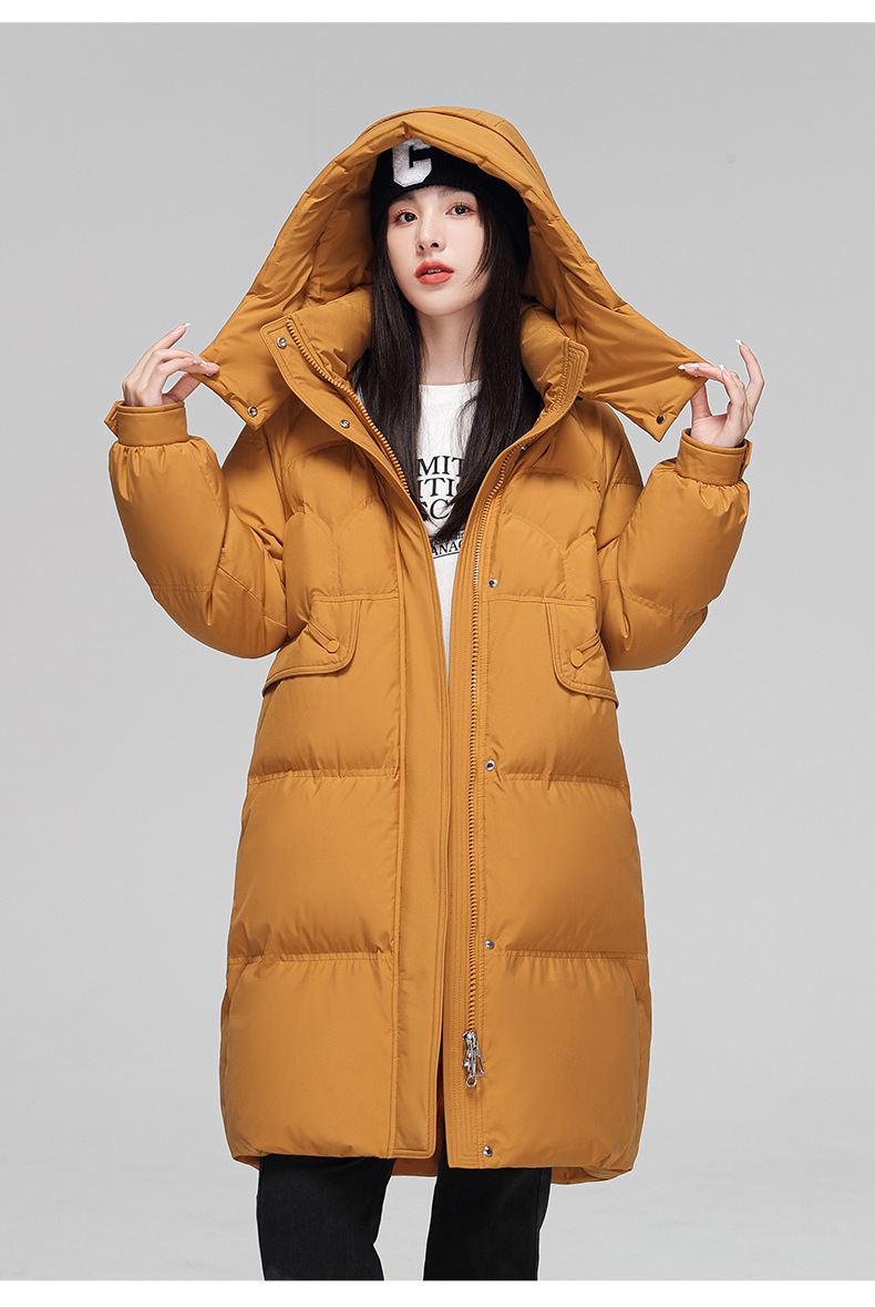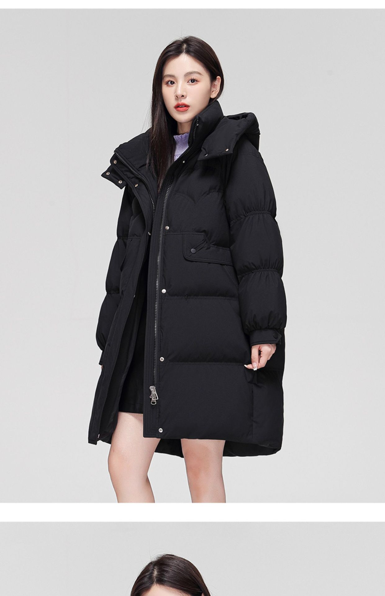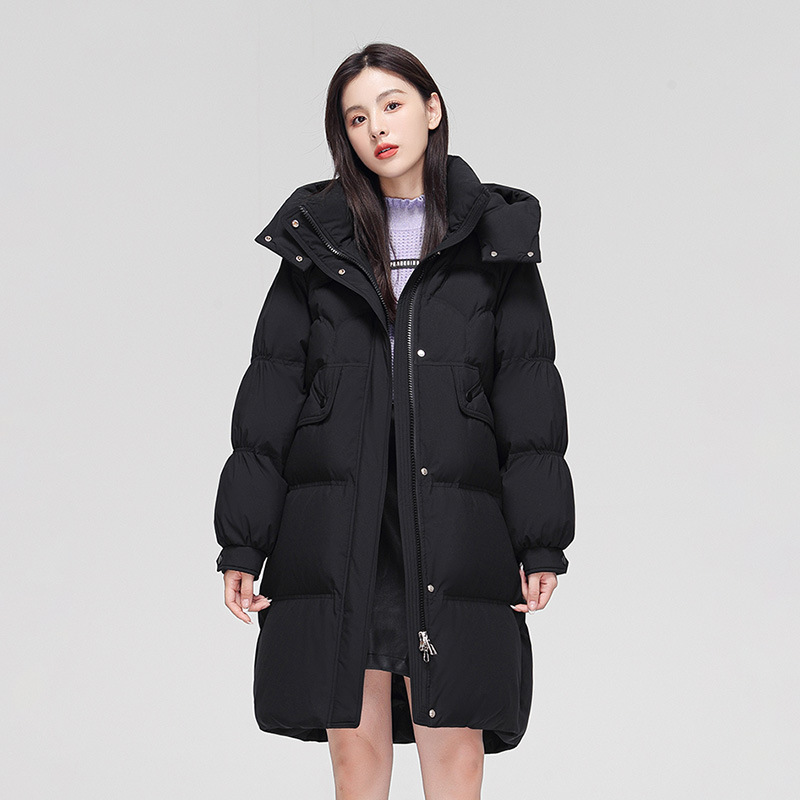 가을/겨울 2022 다운 재킷 여성용 겨울 중간 길이 스탠드 칼라 모자 두꺼운 빵 의류 따뜻한 겨울 코트