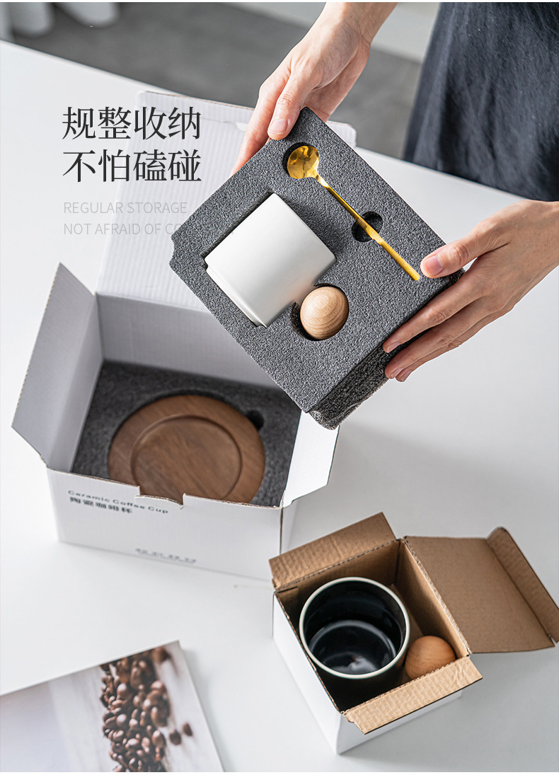 크리 에이 티브 세라믹 커피 컵 높은 외관 가치 홈 사무실 물 컵 나무 손잡이 머그 우유 커피 컵과 접시 가벼운 고급 선물 상자스토어 가기