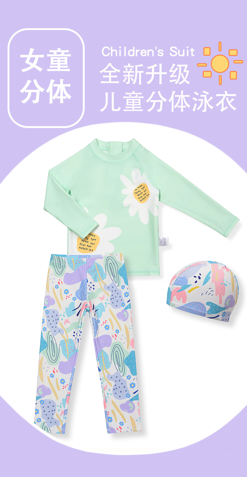 한국 스타일의 여자 수영복 분할 유행 작은 신선한 중간 큰 아이 여아 수영복 자외선 차단제 어린이 수영복 세트스토어 가기