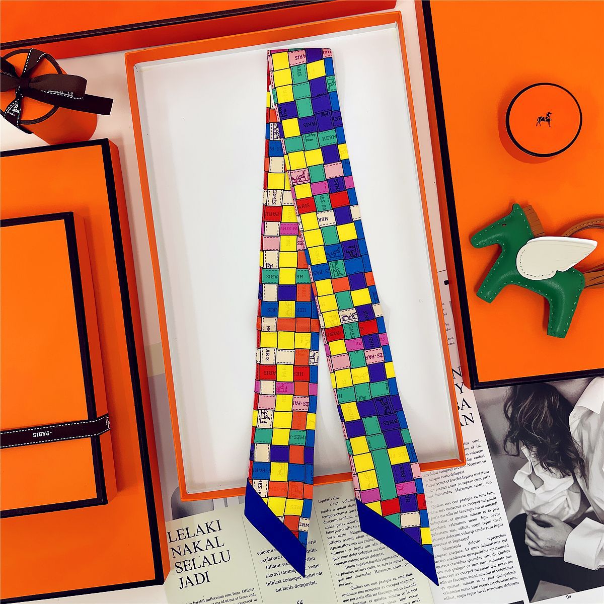 샤넬 스타일 체스 판 격자 무늬 작은 긴 스카프 여성의 새로운 하이 엔드 센스 실크 패션 스카프 헤어 벨트 리본 스카프스토어 가기