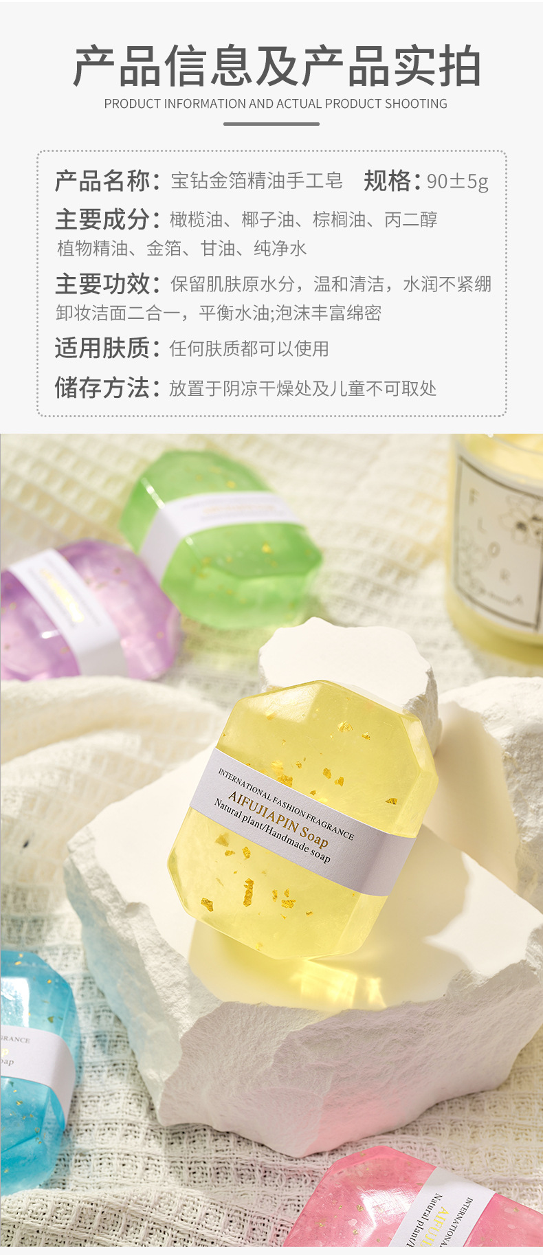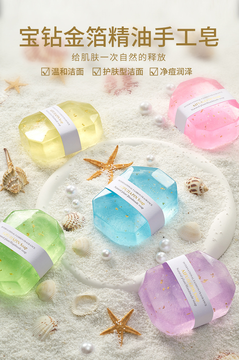 국경 간 대외 무역 다이아몬드 비누 보석 비누 클렌징 목욕 비누 선물 향기 금박 다이아몬드 수제 비누
