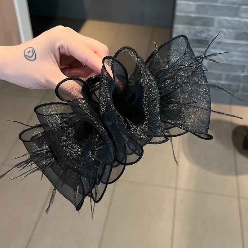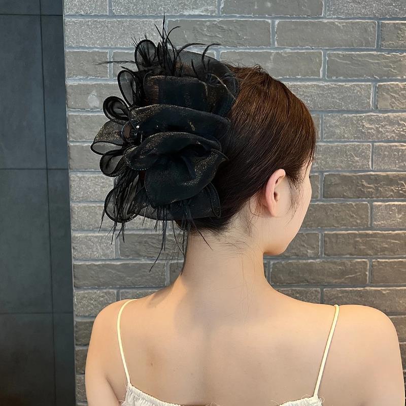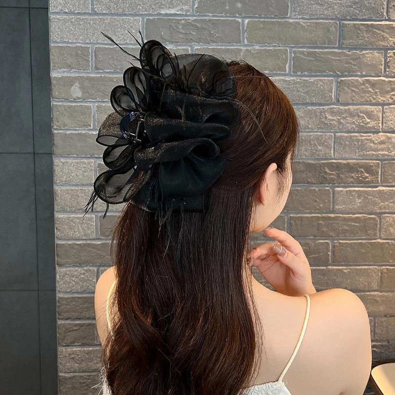큰 꽃 깃털 버블 그랩 클립 여성용 헤어 볼륨 멀티 머리핀 고급 헤어 상어 클립 대형 머리핀 헤드 액세서리