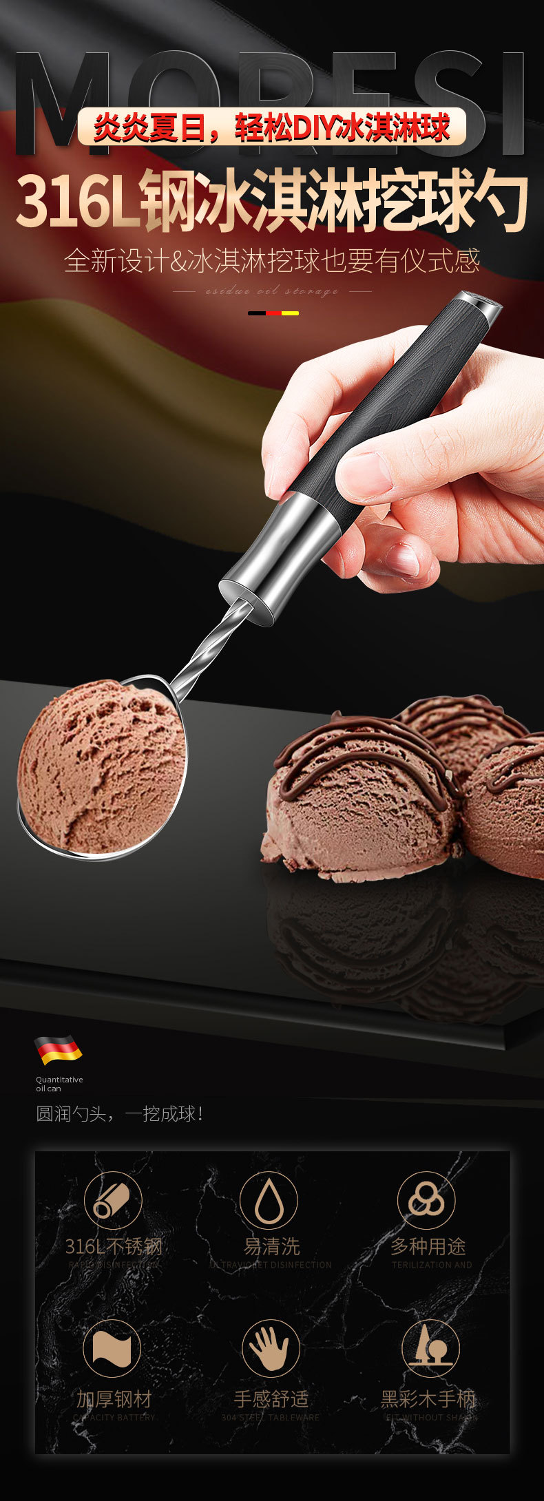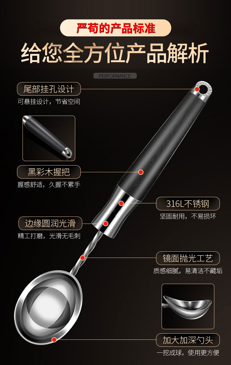 316L 스테인레스 스틸 아이스크림 스푼 탄성 아이스크림 스푼 다기능 과일 공 파기 유물 가정용 수박 파기 스푼스토어 가기