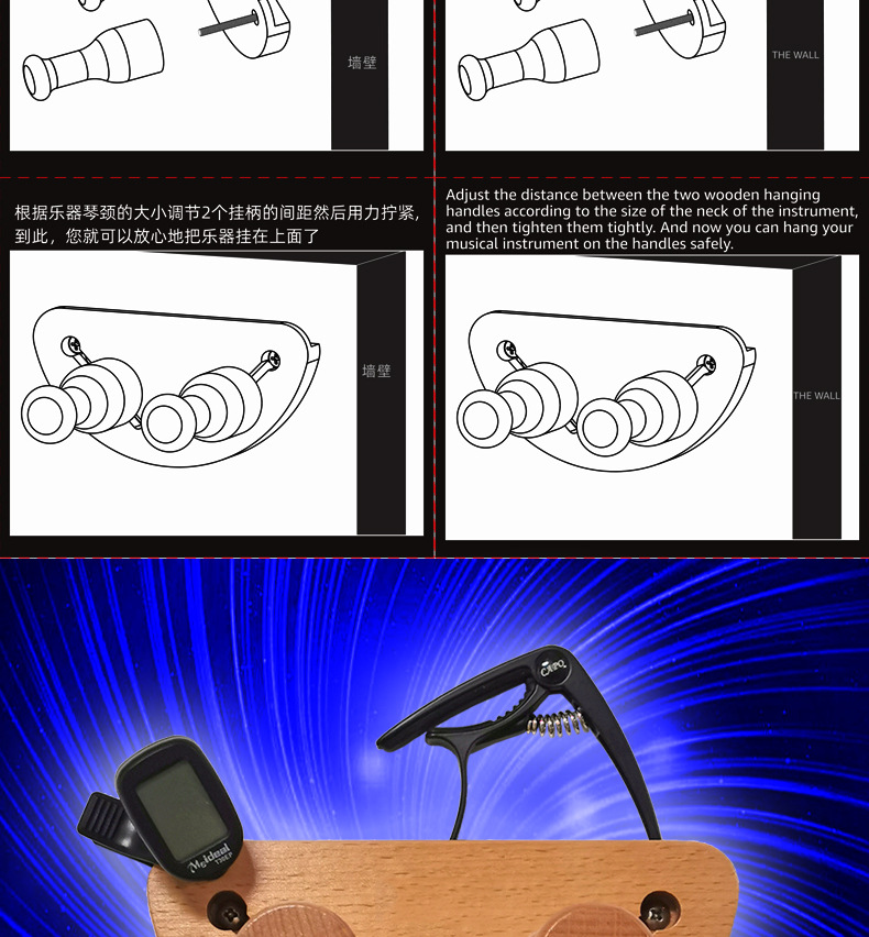 클래식 기타 후크 전기 기타 랙 단단한 나무 걸이 바이올린 벽걸이 피아노 우쿨렐레 행거 도매스토어 가기