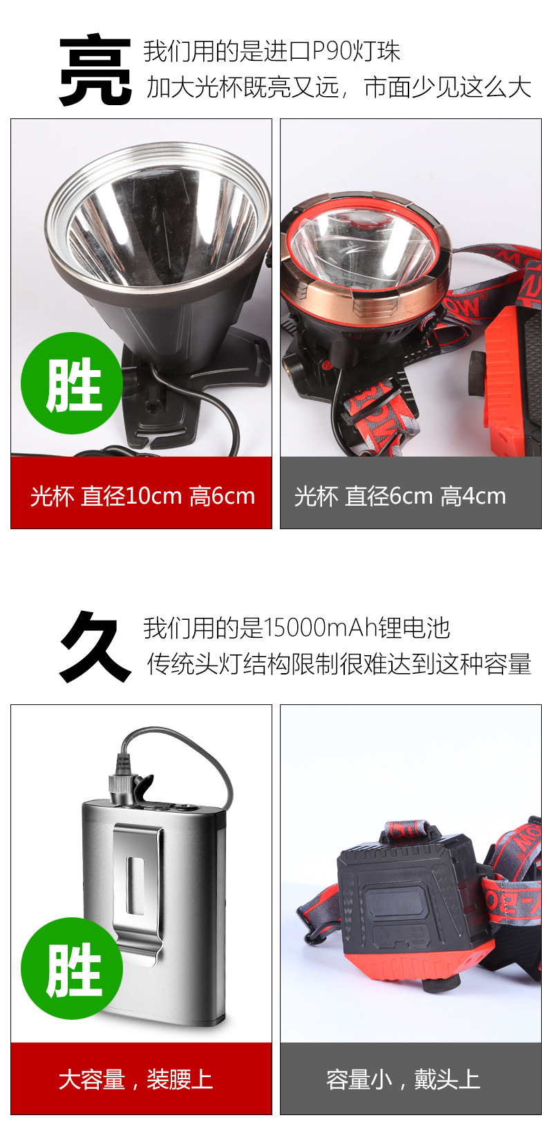 • 11cm 라이트 컵-5036 (헤드라이트 + 분할 배터리 + 헤드라이트 벨트 + 컬러 박스) 15000 mA