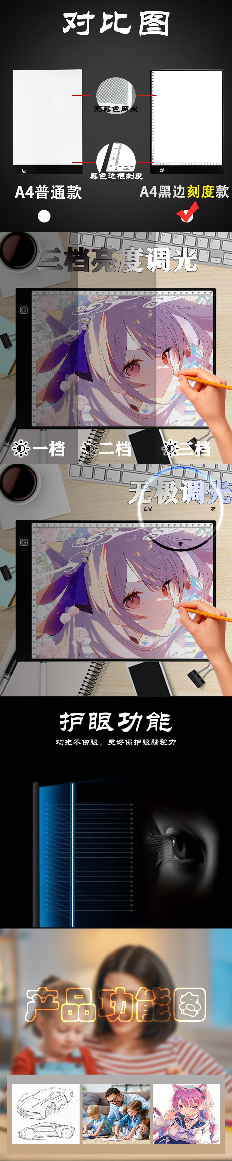 • A3 검정색 프레임 스케일 무단계 디밍 + USB 데이터 케이블